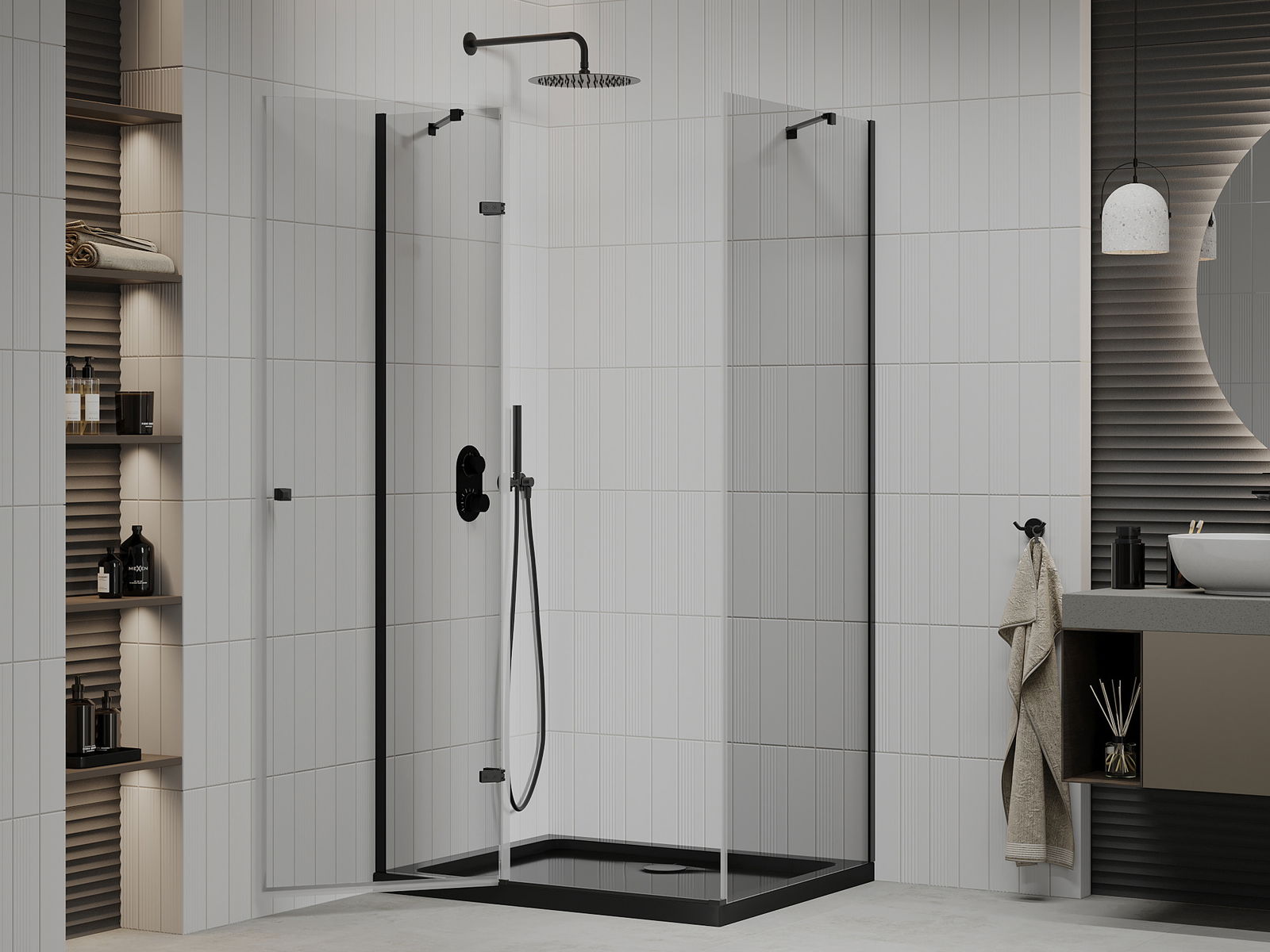 Praktická a pohodlná rukojeť je vyrobena z odolného a trvanlivého kovu. Moderní tvar ve spojení s povrchovou úpravou, která ladí s barvou profilů, dodává celku moderní a stylový vzhled, zdůrazňující estetiku každé koupelny.
