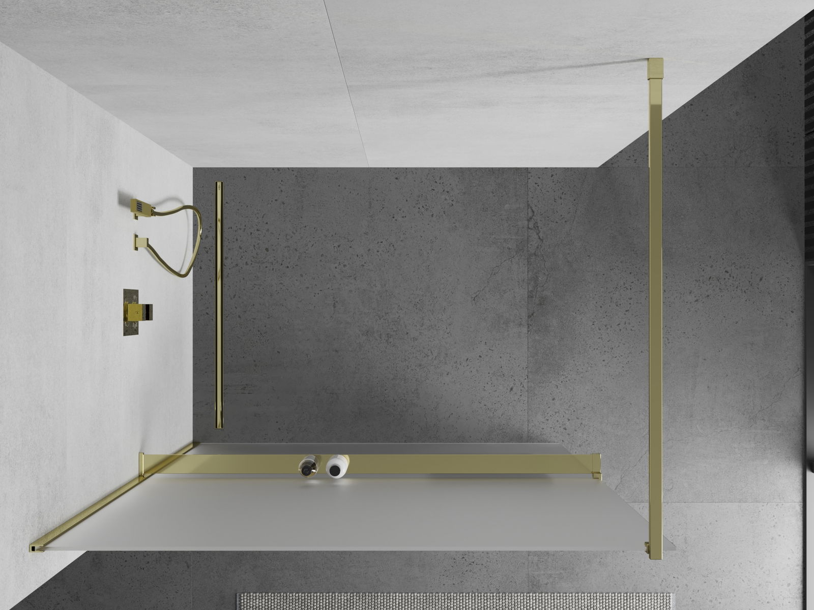 Mexen Kioto+ sprchová stěna s policí Walk-in 70 x 200 cm, mat, zlatá - 800-070-121-50-30