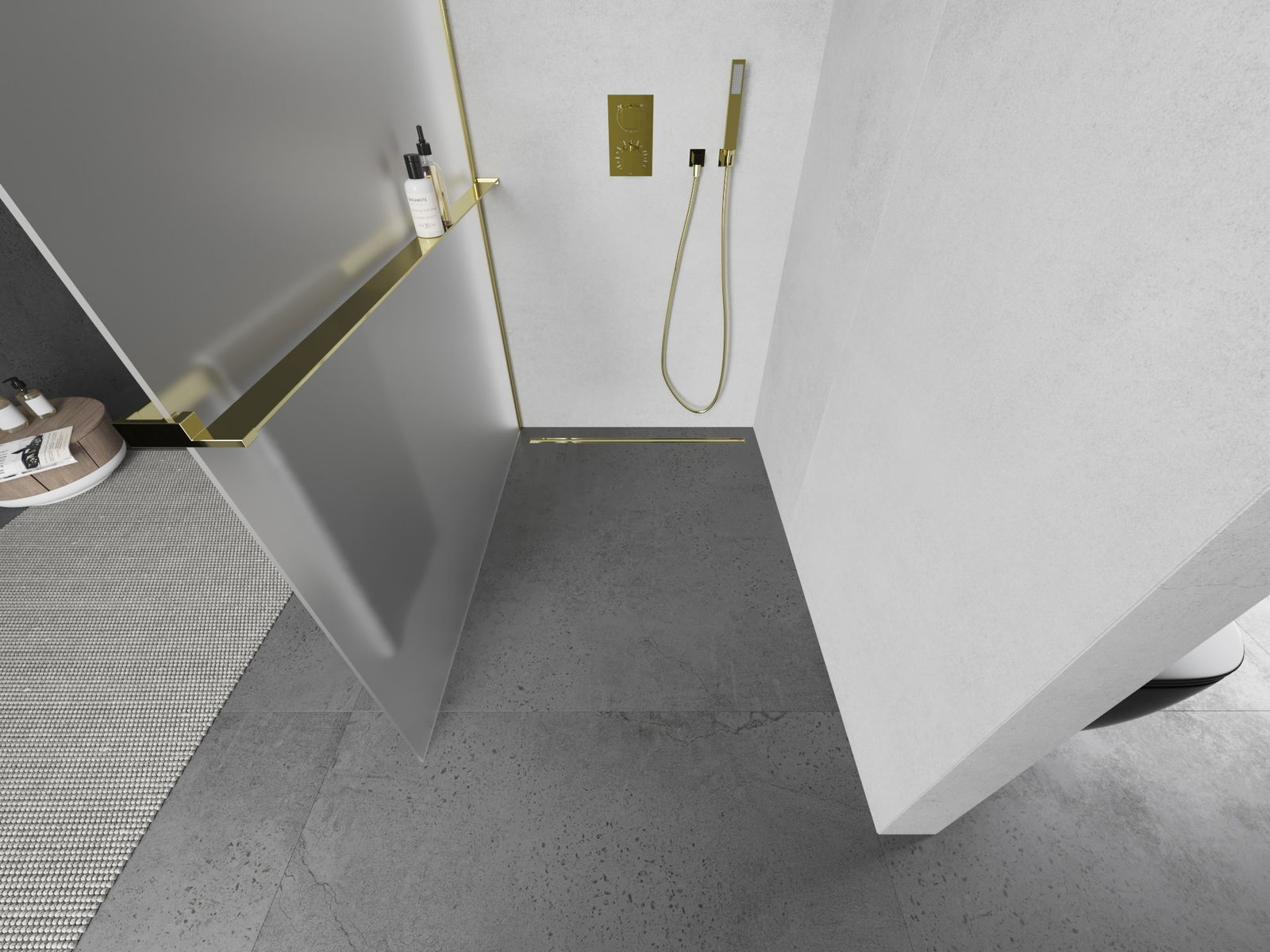 Mexen Kioto+ sprchová zástěna s policí Walk-in 120 x 200 cm, matná, zlatá - 800-120-121-50-30