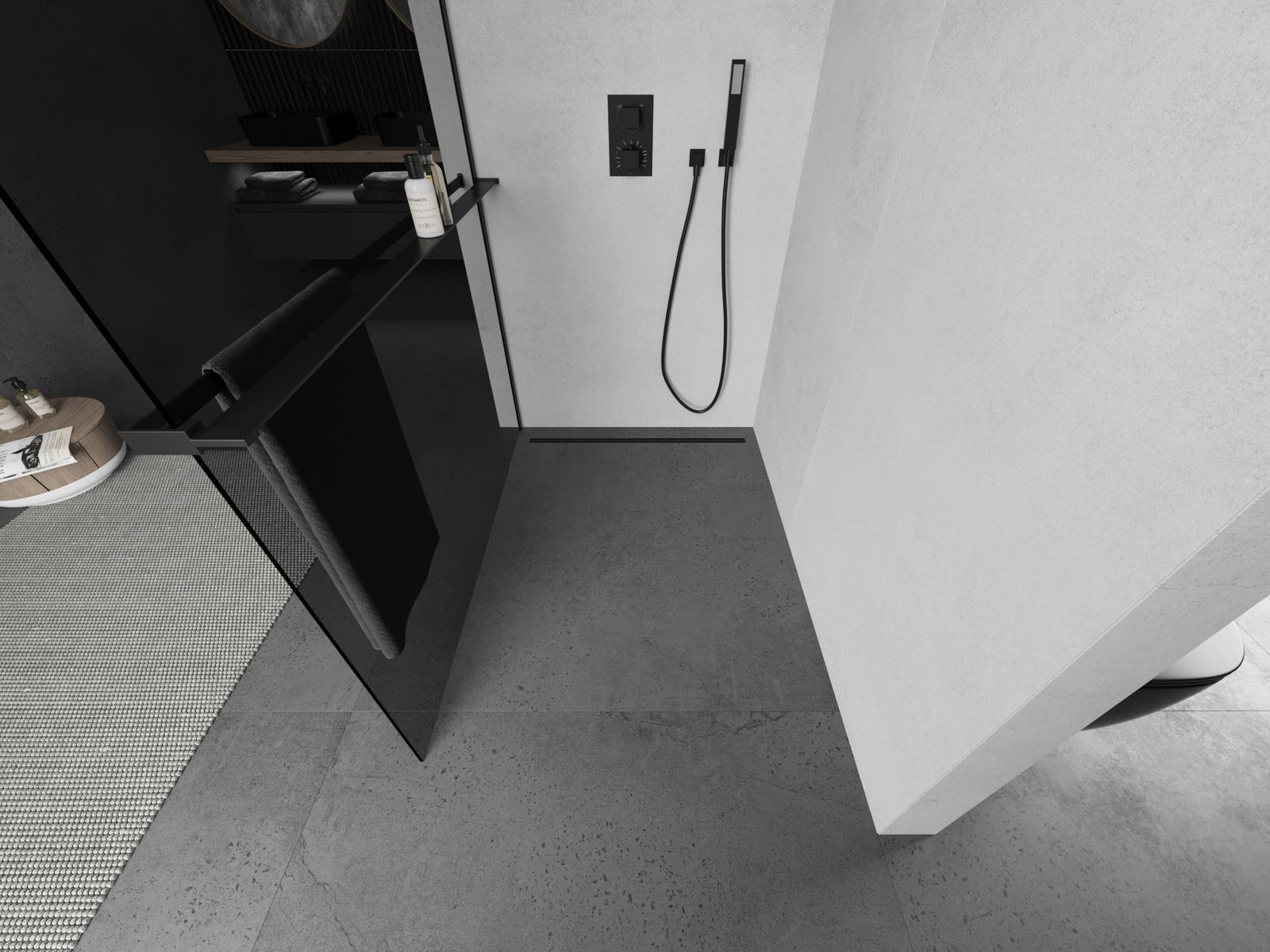 Mexen Kioto+ sprchová zástěna s policí Walk-in 70 x 200 cm, grafitová, černá - 800-070-121-70-40