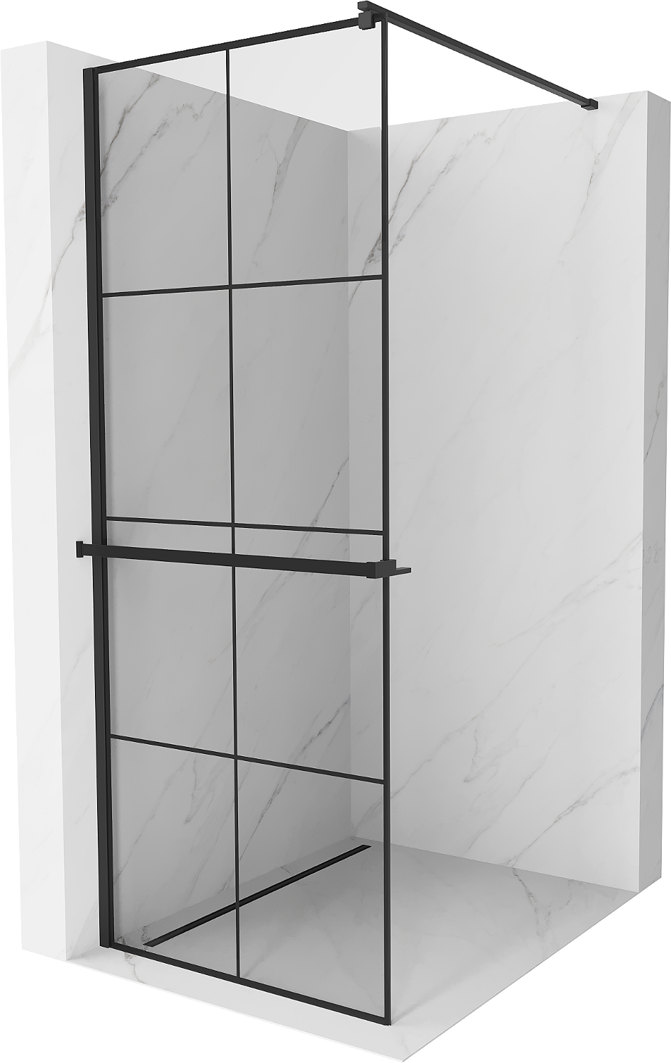 • Mexen Kioto+ sprchová zástěna s policí Walk-in 90 x 200 cm, černá mřížka, černá - 800-090-121-70-77