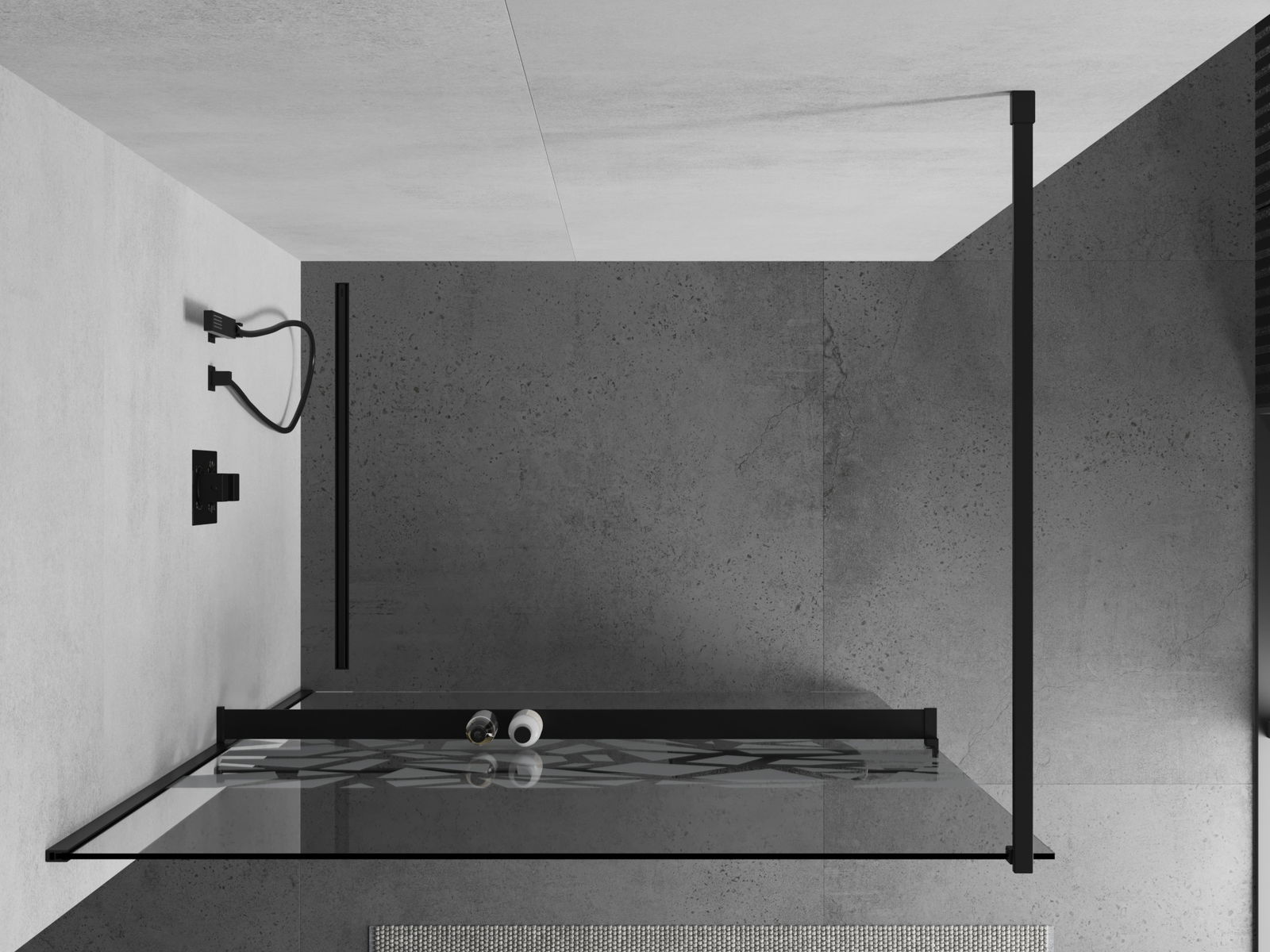 Mexen Kioto+ sprchová stěna s poličkou Walk-in 70 x 200 cm, bílý vzor, černá - 800-070-121-70-85