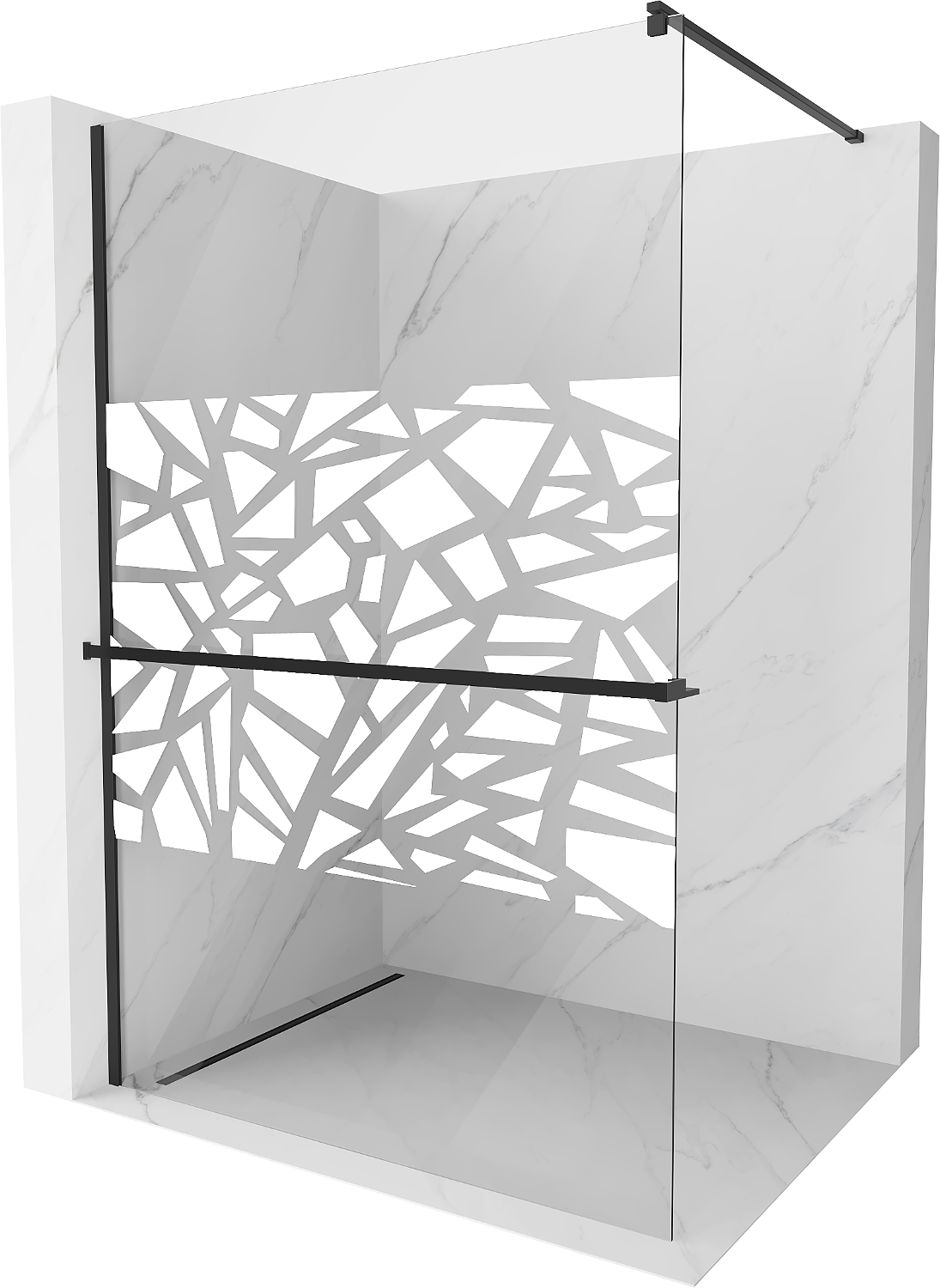 Mexen Kioto+ sprchová stěna s poličkou Walk-in 130 x 200 cm, bílý vzor, černá - 800-130-121-70-85