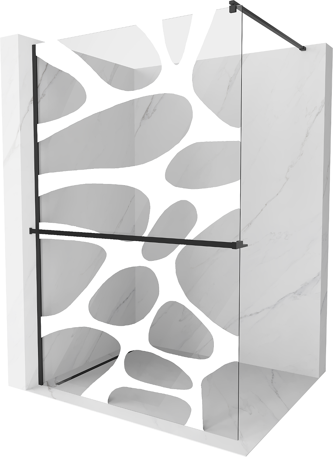 Mexen Kioto+ sprchová stěna s poličkou Walk-in 110 x 200 cm, bílá vlna, černá - 800-110-121-70-97