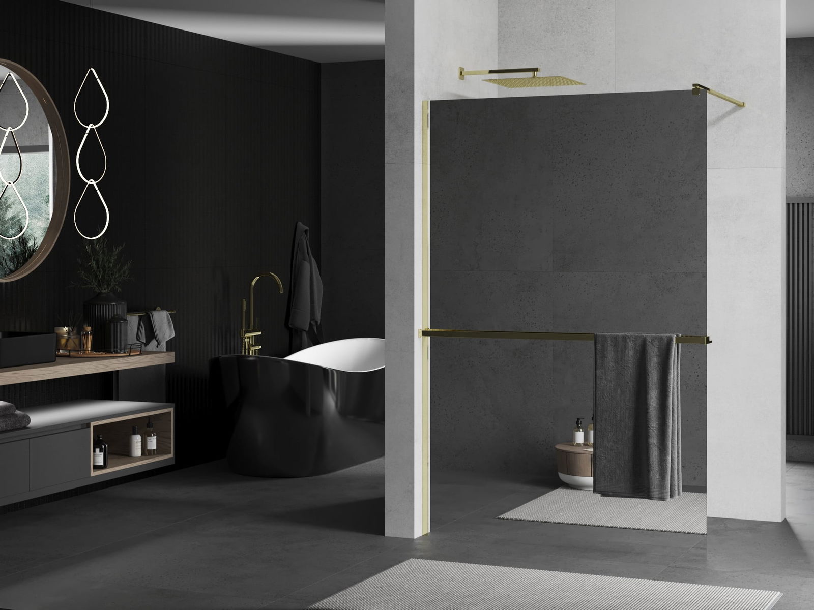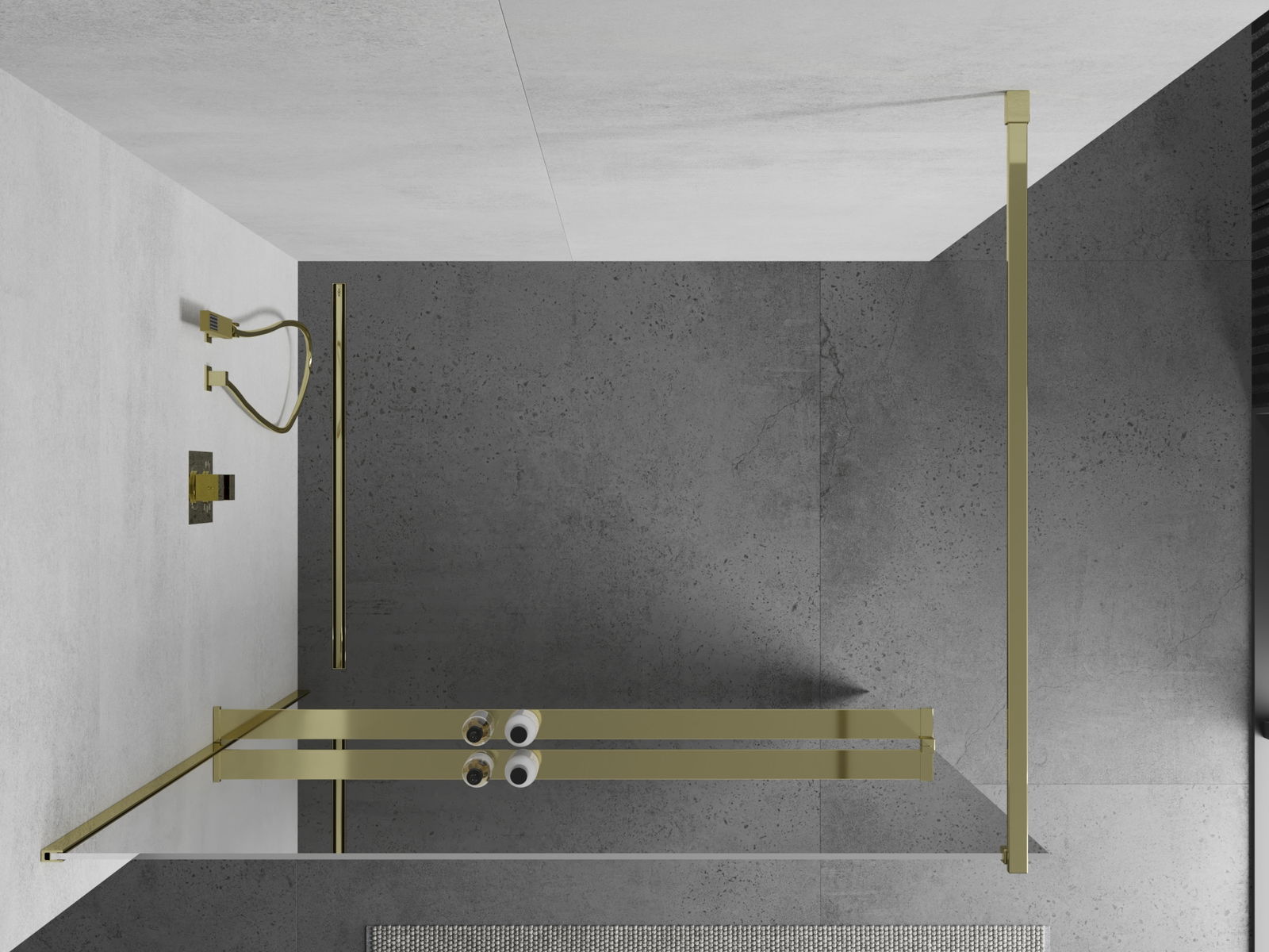 Mexen Kioto+ sprchová stěna s poličkou Walk-in 80 x 200 cm, zrcadlo, zlatá - 800-080-121-50-50