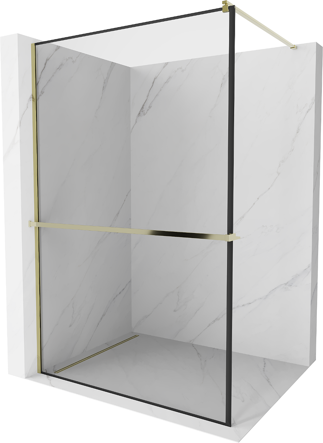 Mexen Kioto+ sprchová stěna s policí Walk-in 90 x 200 cm, černý rám, zlatá - 800-090-121-50-70