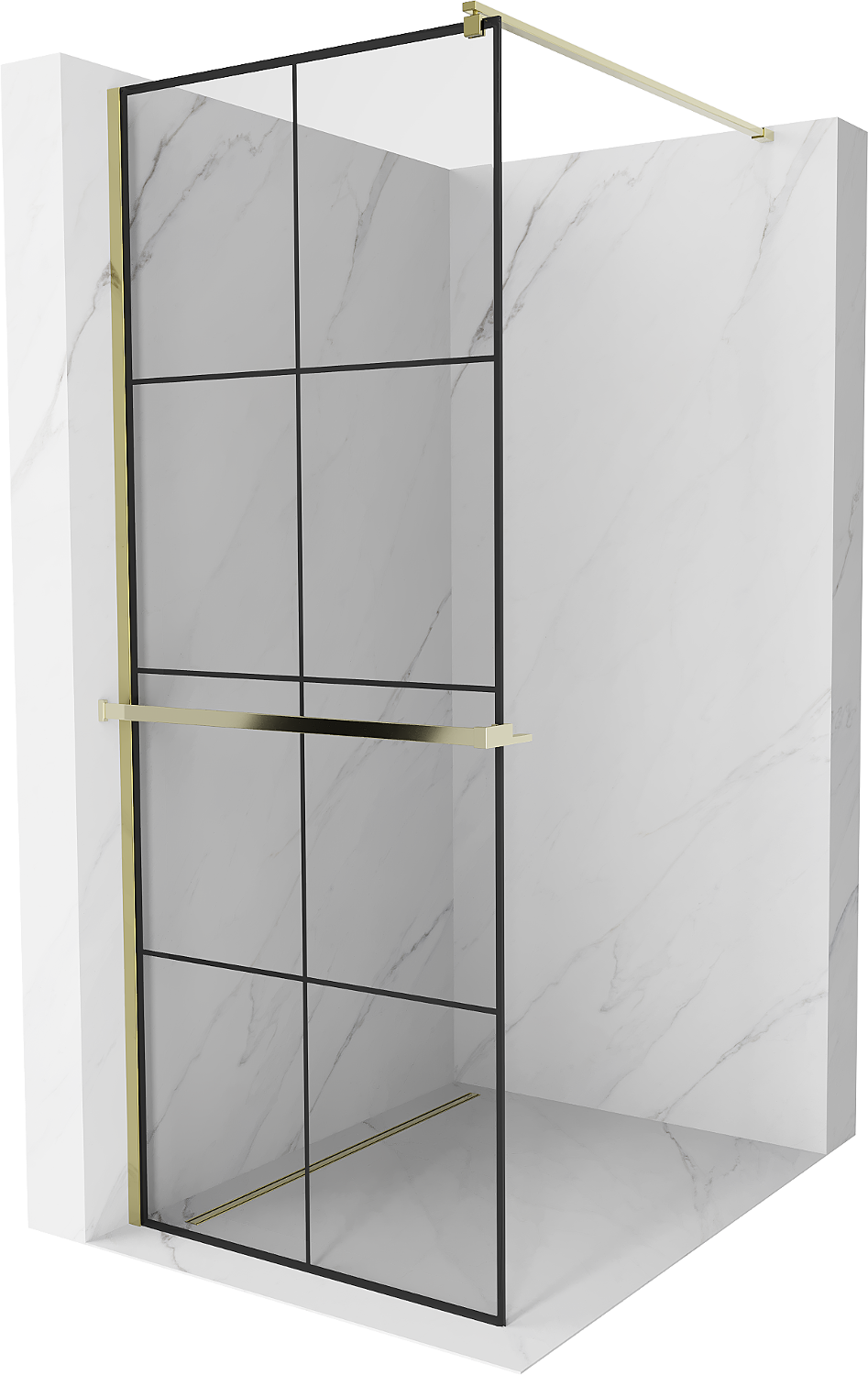 Mexen Kioto+ sprchová zástěna s policí Walk-in 80 x 200 cm, černá mřížka, zlatá - 800-080-121-50-77