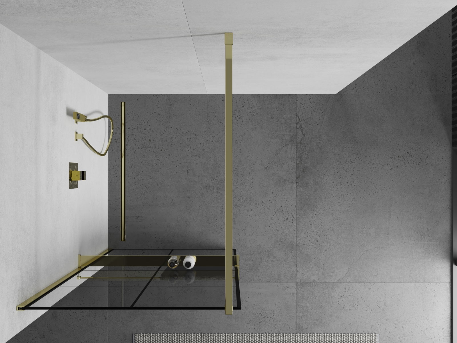 Mexen Kioto+ sprchová stěna s poličkou Walk-in 90 x 200 cm, černá mřížka, zlatá - 800-090-121-50-77