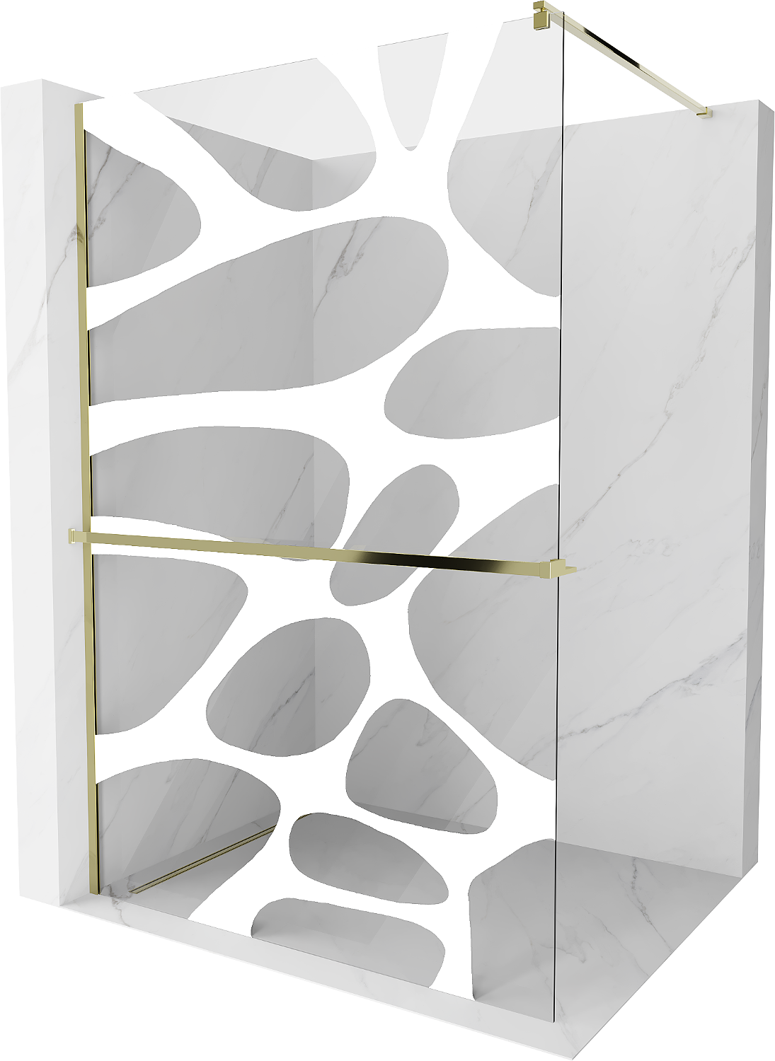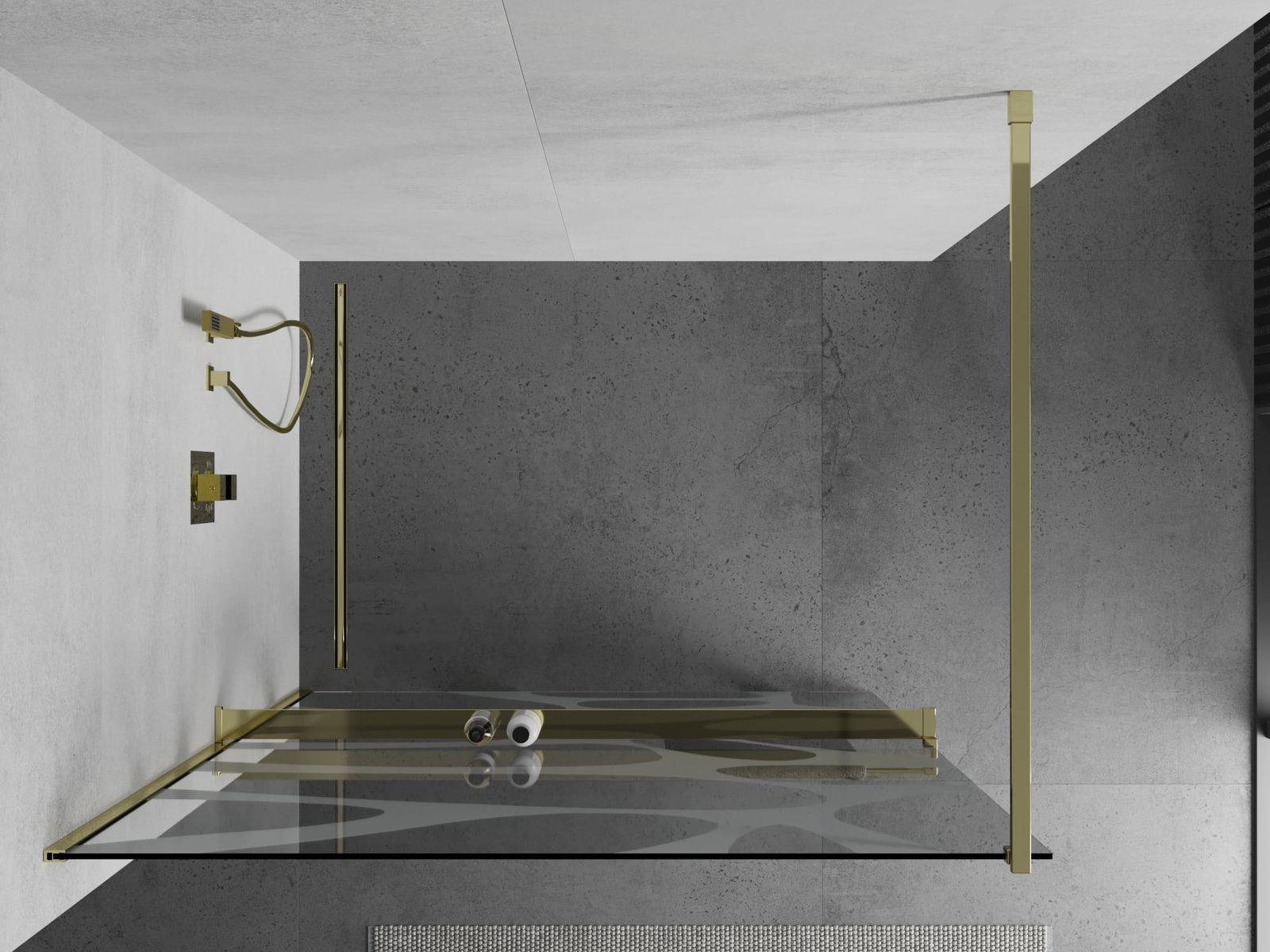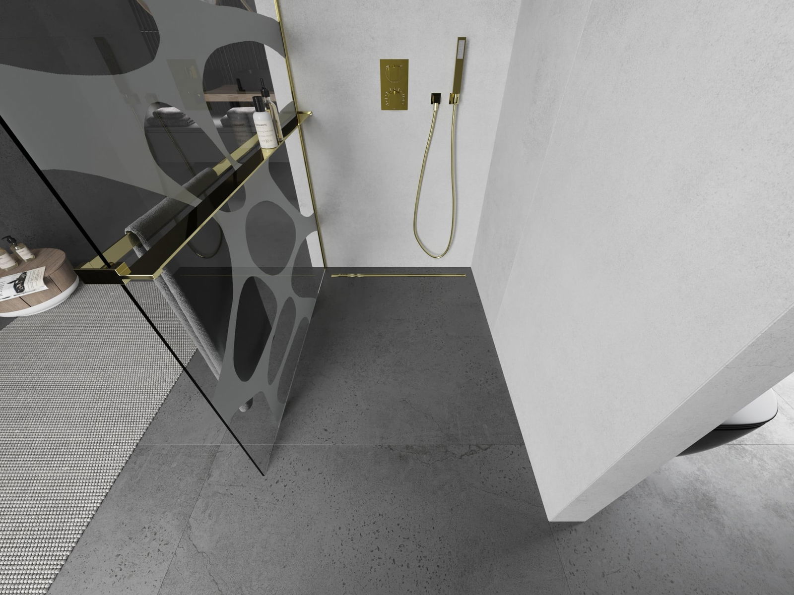 Mexen Kioto+ sprchová zástěna s policí Walk-in 100 x 200 cm, bílá vlna, zlatá - 800-100-121-50-97
