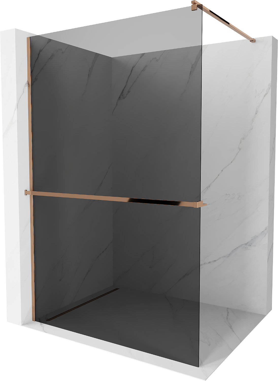 Mexen Kioto+ sprchová stěna s policí Walk-in 90 x 200 cm, grafit, růžové zlato - 800-090-121-60-40