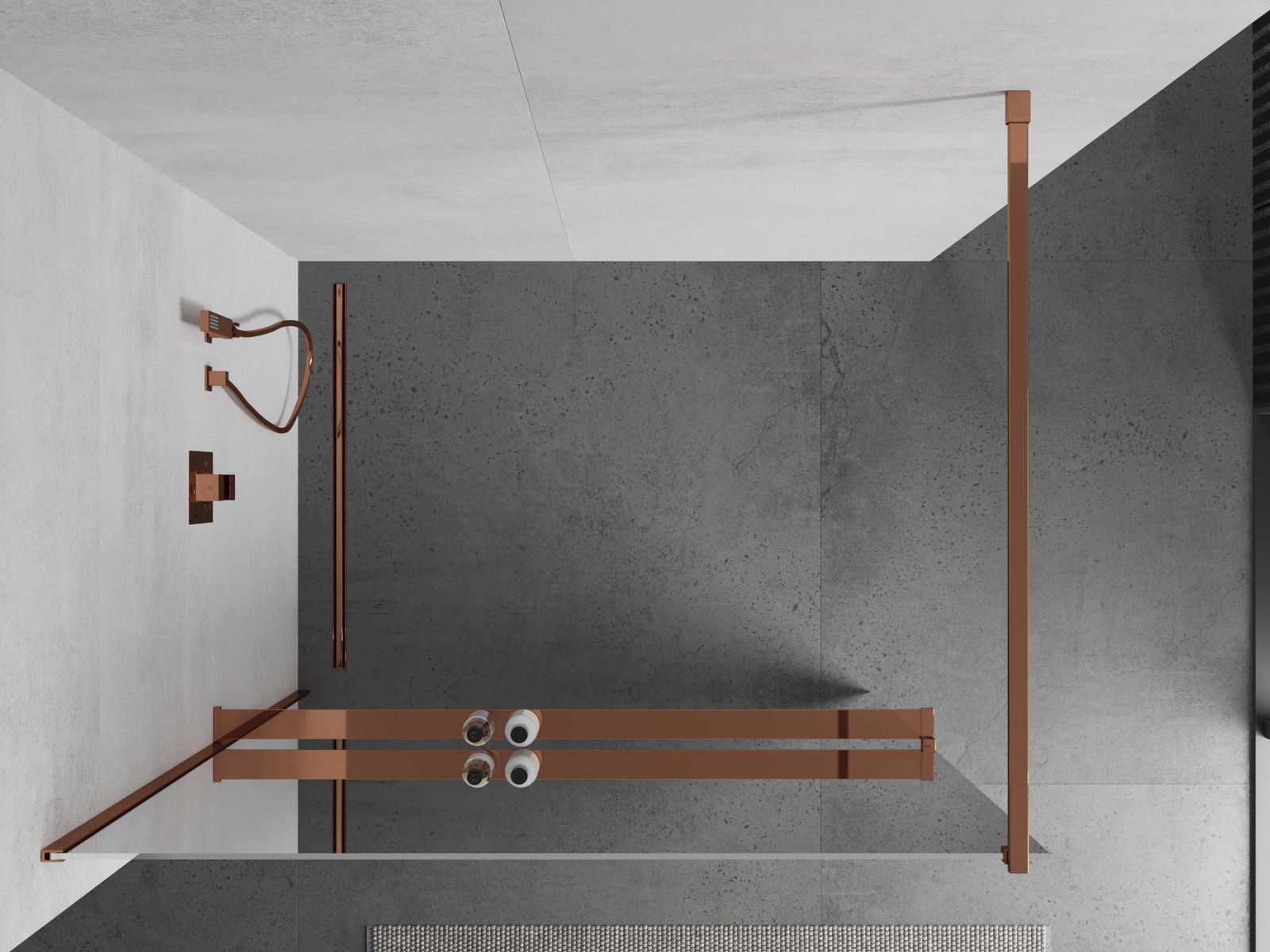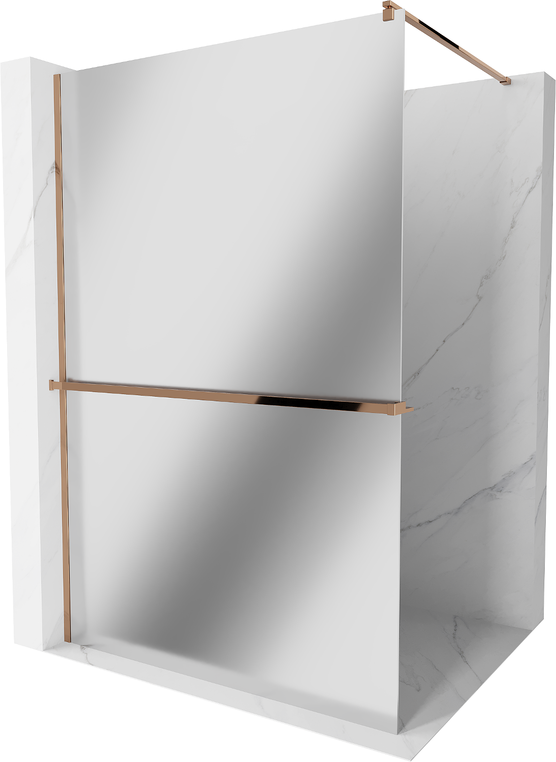 Mexen Kioto+ sprchová stěna s poličkou Walk-in 90 x 200 cm, zrcadlo, růžové zlato - 800-090-121-60-50
