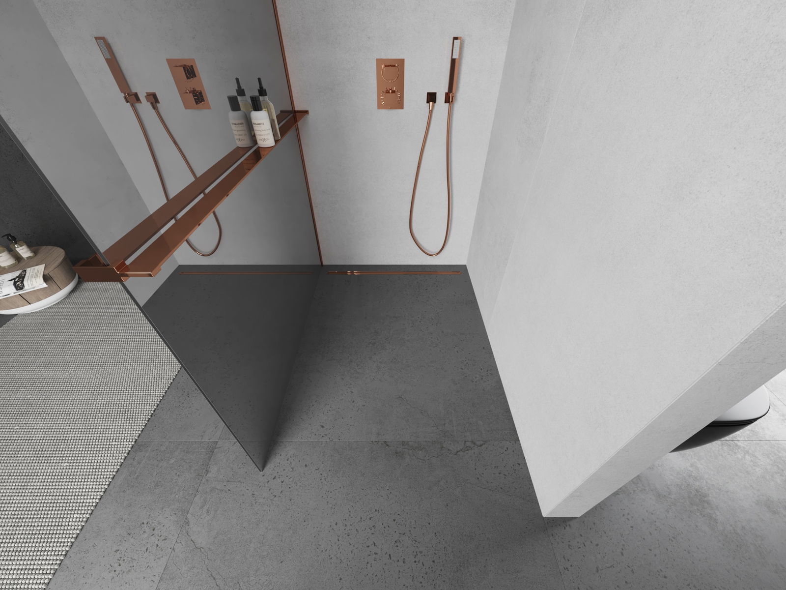 Mexen Kioto+ sprchová stěna s policí Walk-in 100 x 200 cm, zrcadlo, růžové zlato - 800-100-121-60-50