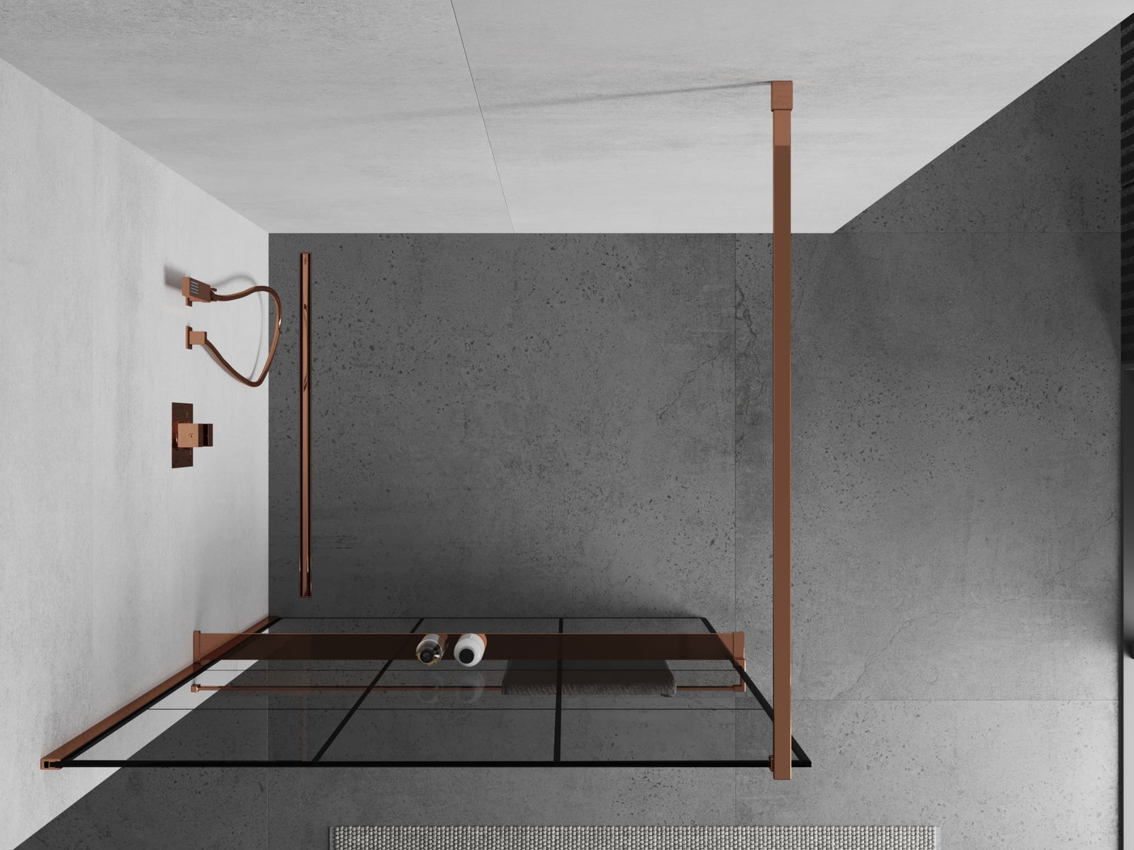 Mexen Kioto+ sprchová stěna s policí Walk-in 100 x 200 cm, černá mřížka, růžové zlato - 800-100-121-60-77