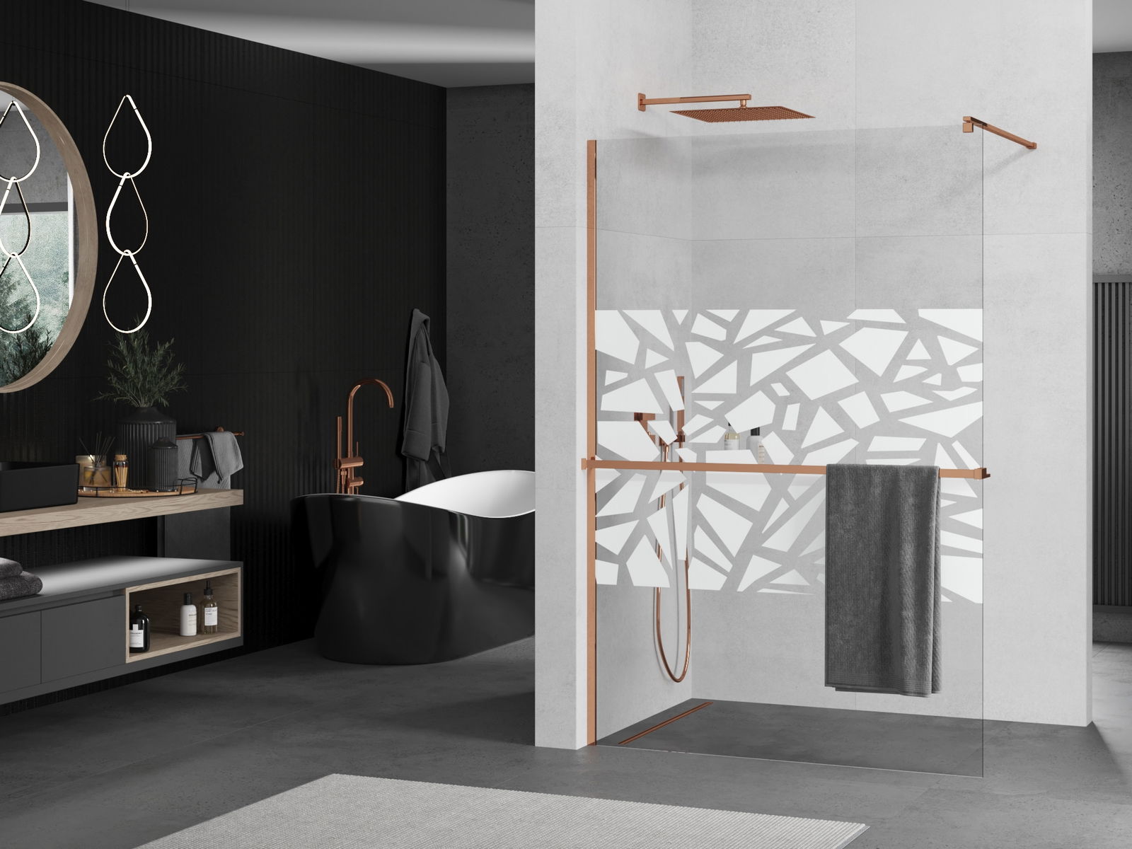 Mexen Kioto+ sprchová stěna s policí Walk-in 70 x 200 cm, bílý vzor, růžové zlato - 800-070-121-60-85