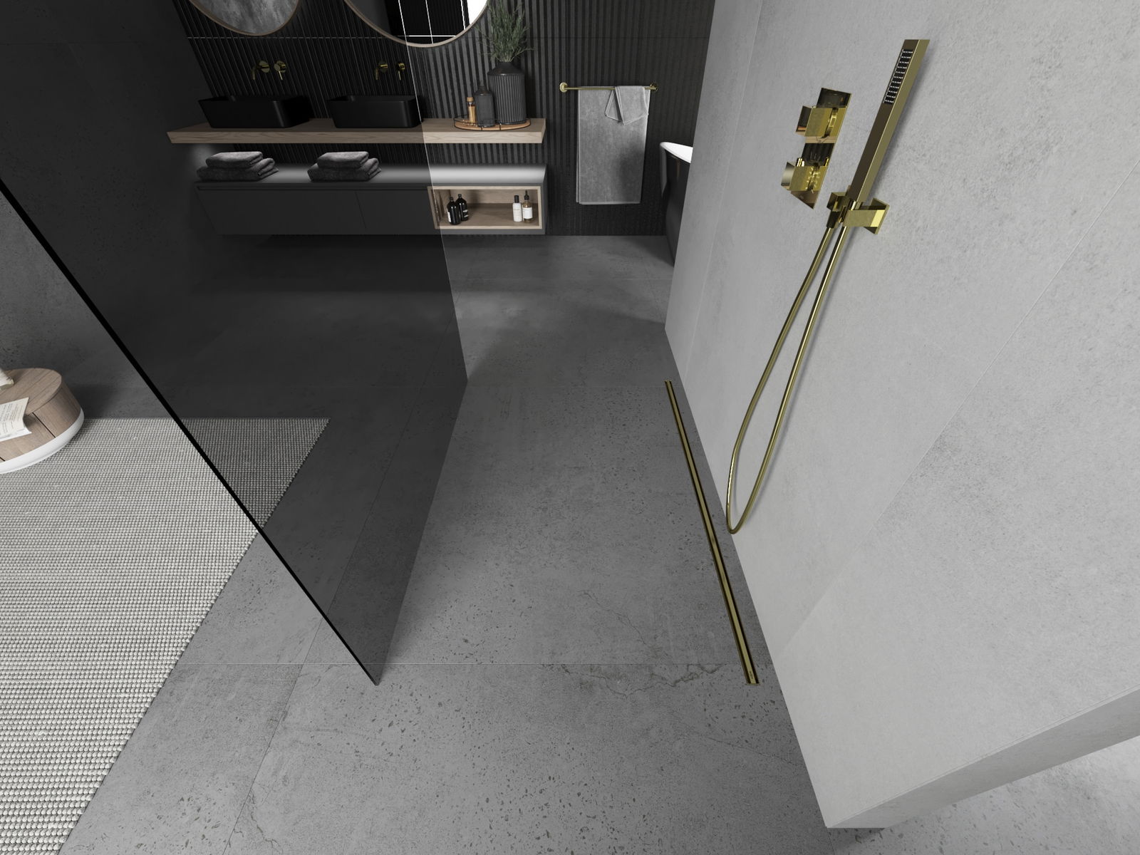 Mexen Kioto volně stojící sprchová stěna 120 x 200 cm, grafit 8 mm, zlatá - 800-120-002-50-40