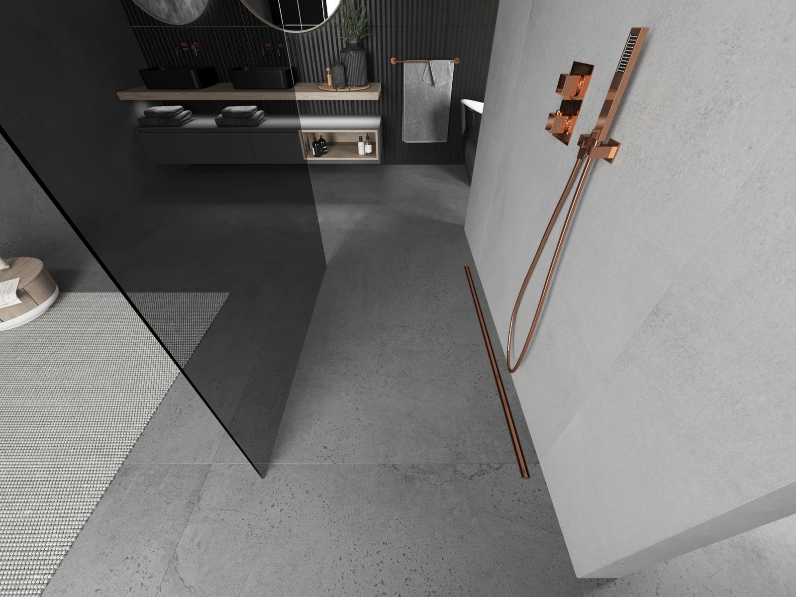 Mexen Kioto volně stojící sprchová stěna 110 x 200 cm, grafit 8 mm, růžové zlato - 800-110-002-60-40