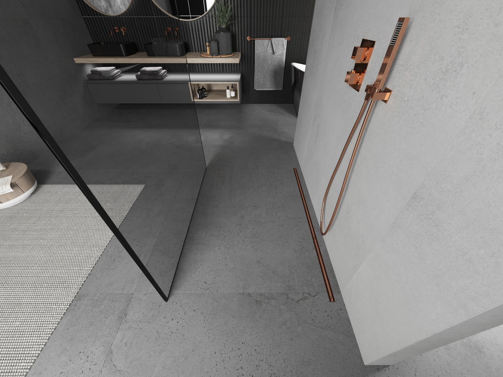 Mexen Kioto volně stojící sprchová stěna 140 x 200 cm, černý rámeček 8 mm, růžové zlato - 800-140-002-60-70