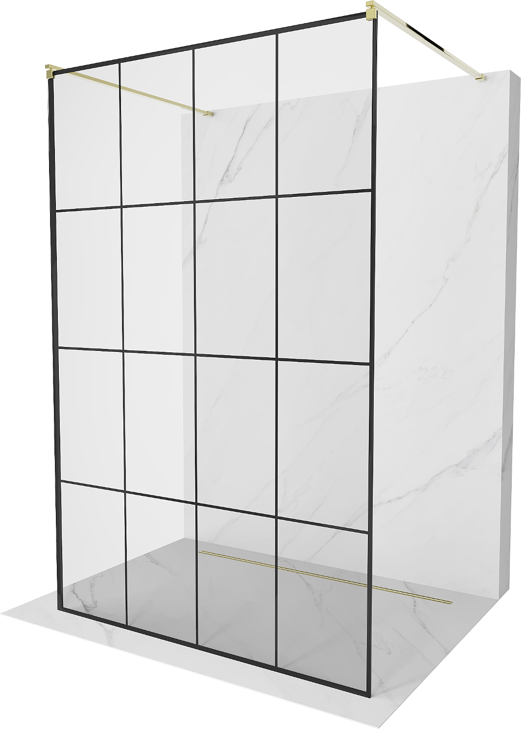 Mexen Kioto samostatně stojící sprchová stěna 140 x 200 cm, černá mřížka 8 mm, zlatá - 800-140-002-50-77