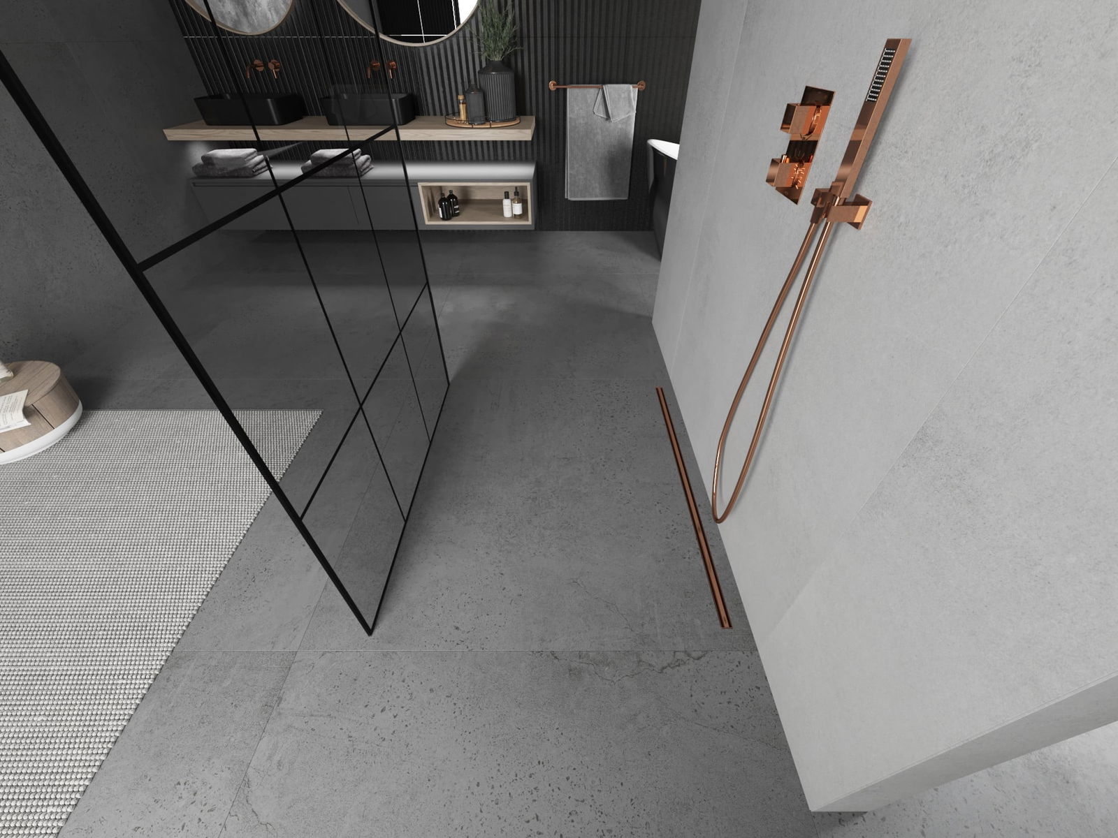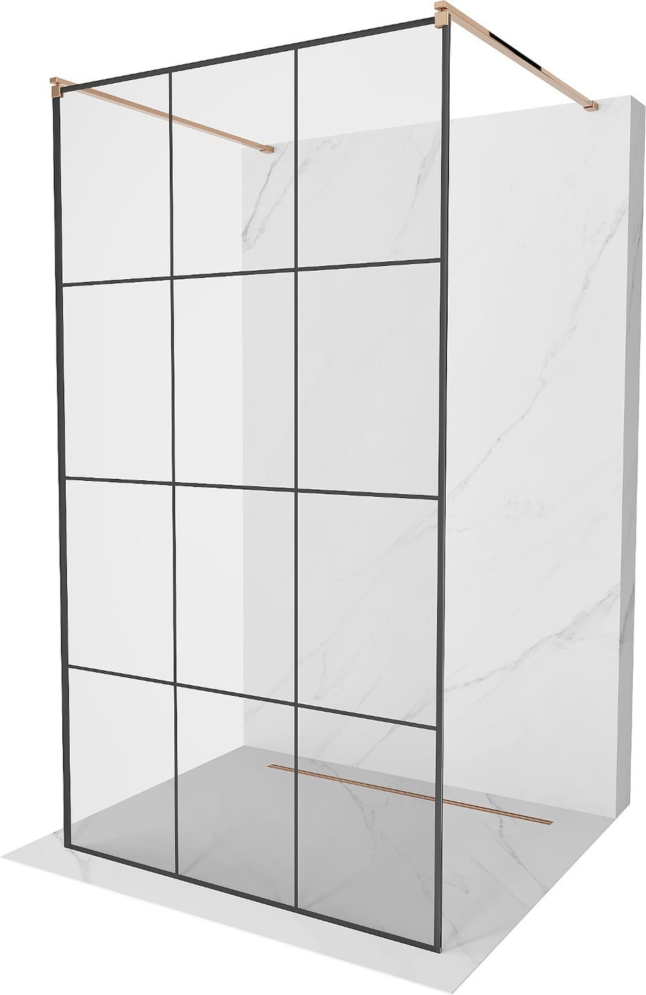 Mexen Kioto volně stojící sprchová stěna 120 x 200 cm, černá mřížka 8 mm, růžové zlato - 800-120-002-60-77