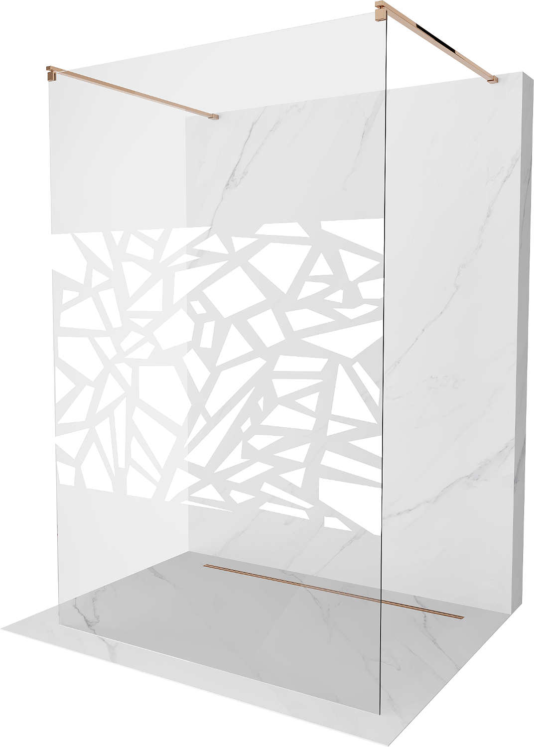 Mexen Kioto sprchová stěna volně stojící 130 x 200 cm, bílý vzor 8 mm, růžové zlato - 800-130-002-60-85