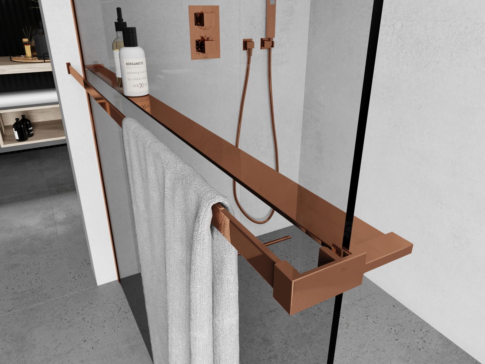 Mexen polička pro sprchovou stěnu s reliéfem na ručníky, růžové zlato - 800-02-60