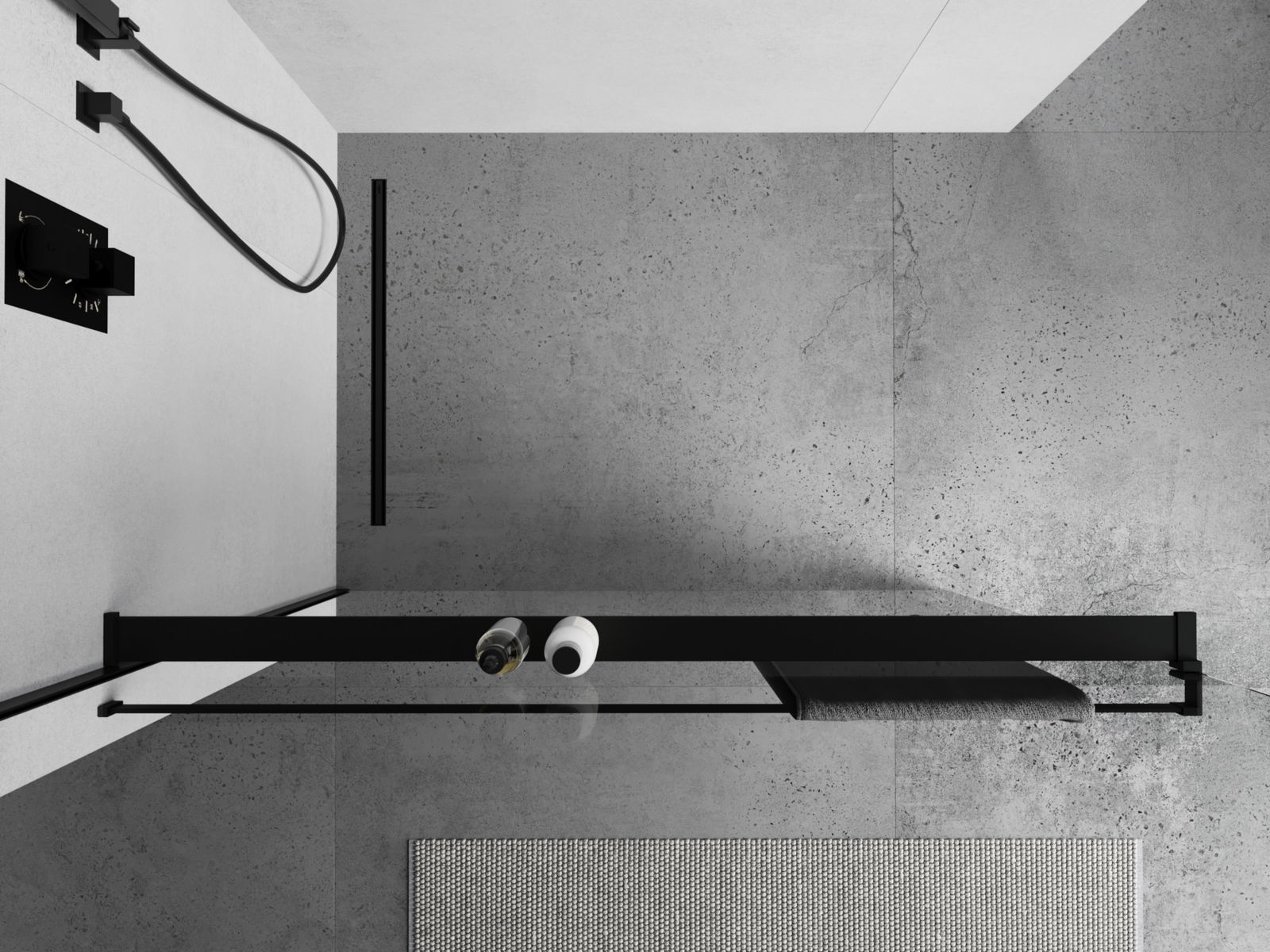 Mexen police ke sprchové stěně s relingem na ručníky, černá - 800-02-70