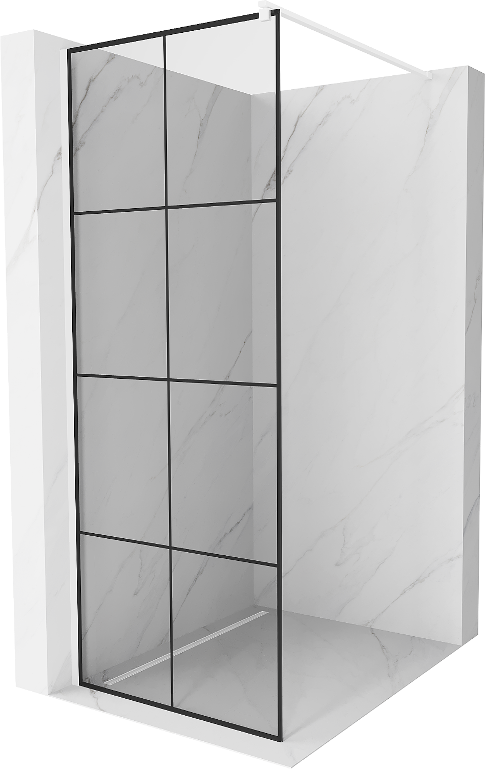 Mexen Kioto sprchová stěna Walk-in 70 x 200 cm, černá mřížka 8 mm, bílá - 800-070-101-20-77