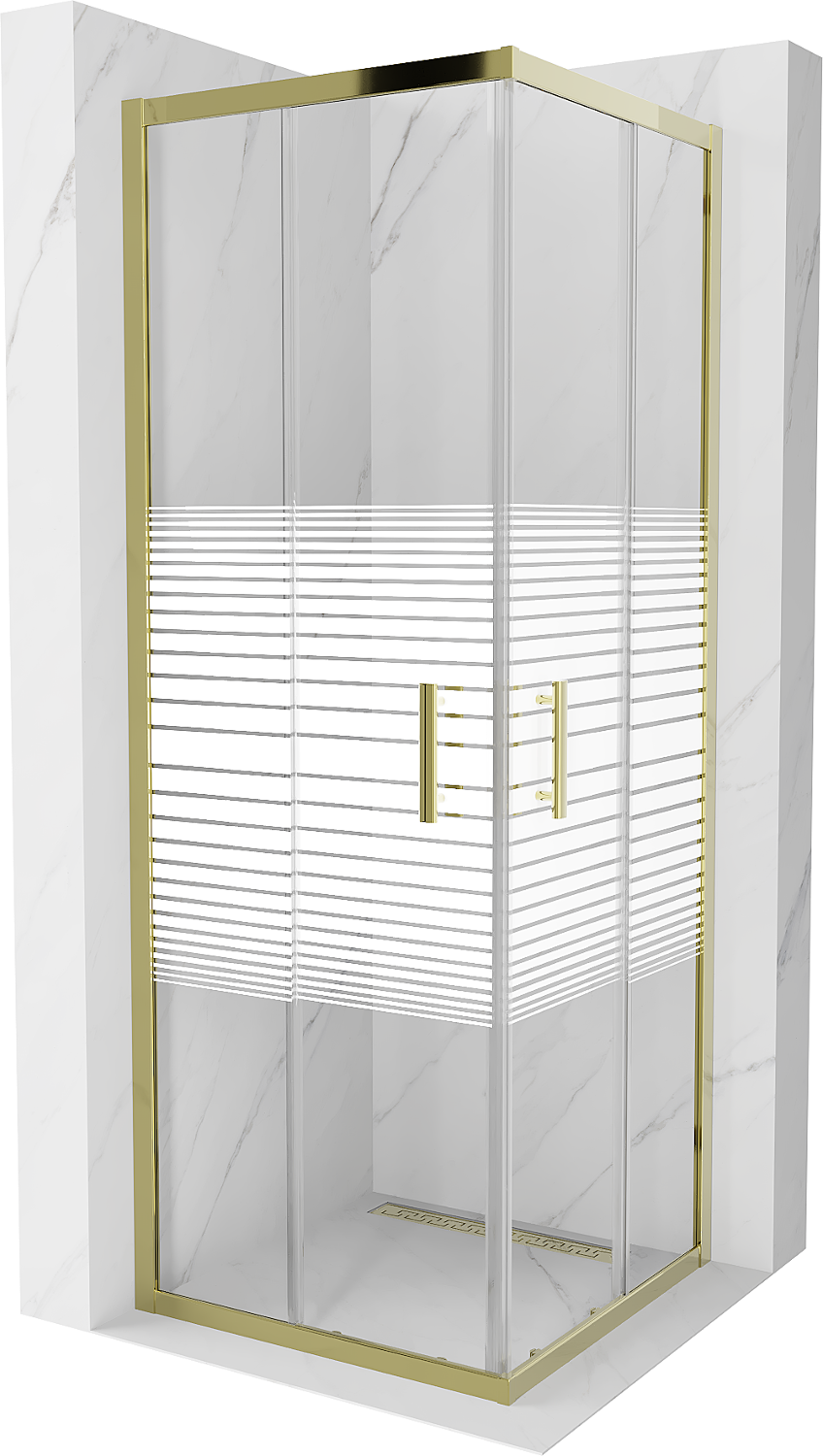 • Mexen Rio Čtvercová sprchová kabina 70 x 70 cm, bílé pruhy, zlatá - 860-070-070-50-20