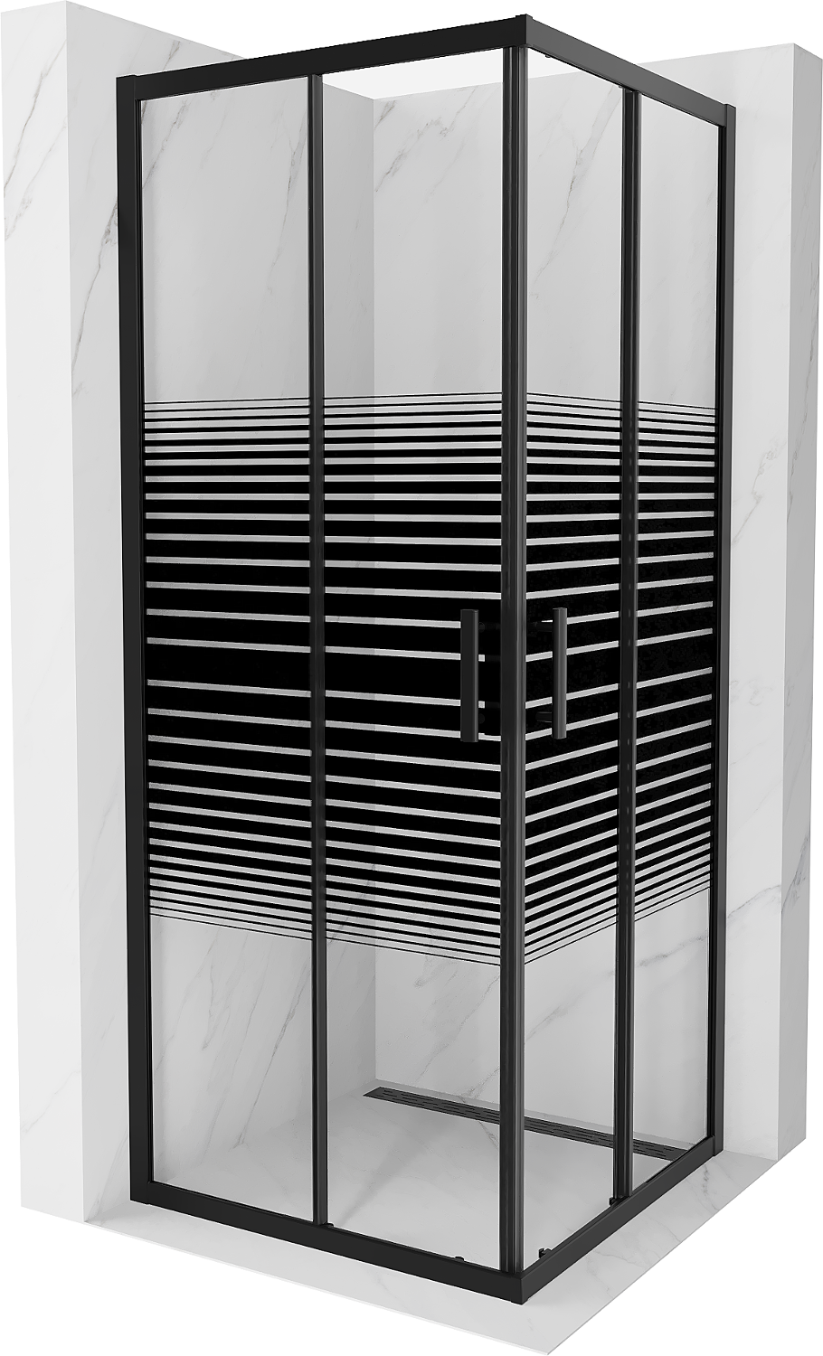 Mexen Rio čtvercový sprchový kout 80 x 80 cm, černé pruhy, černý - 860-080-080-70-20