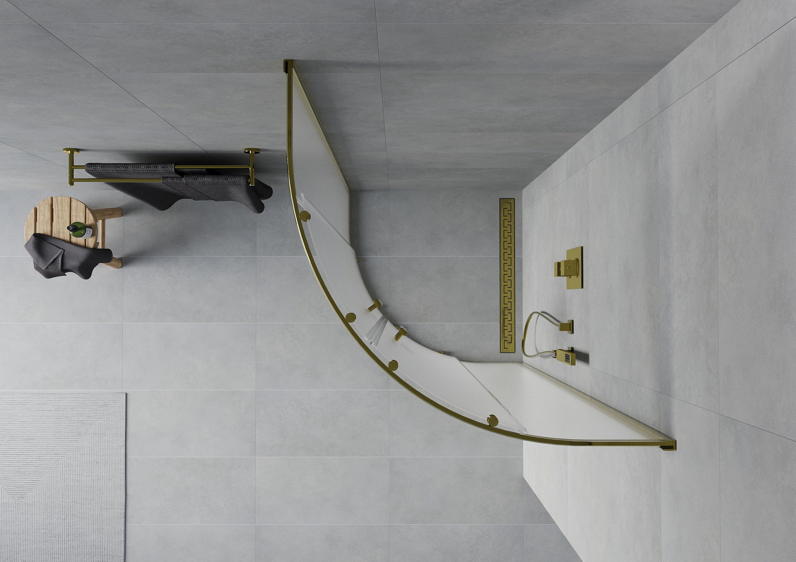 Mexen Rio sprchový kout půlkruhový 90 x 90 cm, matný, zlatý - 863-090-090-50-30