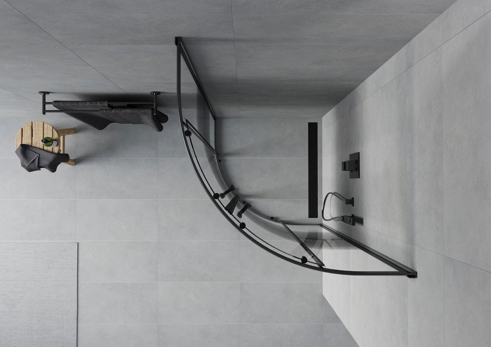 Praktická a pohodlná rukojeť je vyrobena z odolného a trvanlivého kovu. Moderní tvar ve spojení s povrchovou úpravou, která ladí s barvou profilů, dodává celku moderní a stylový vzhled, zdůrazňující estetiku každé koupelny.