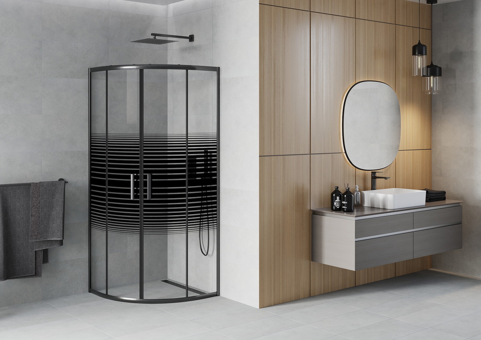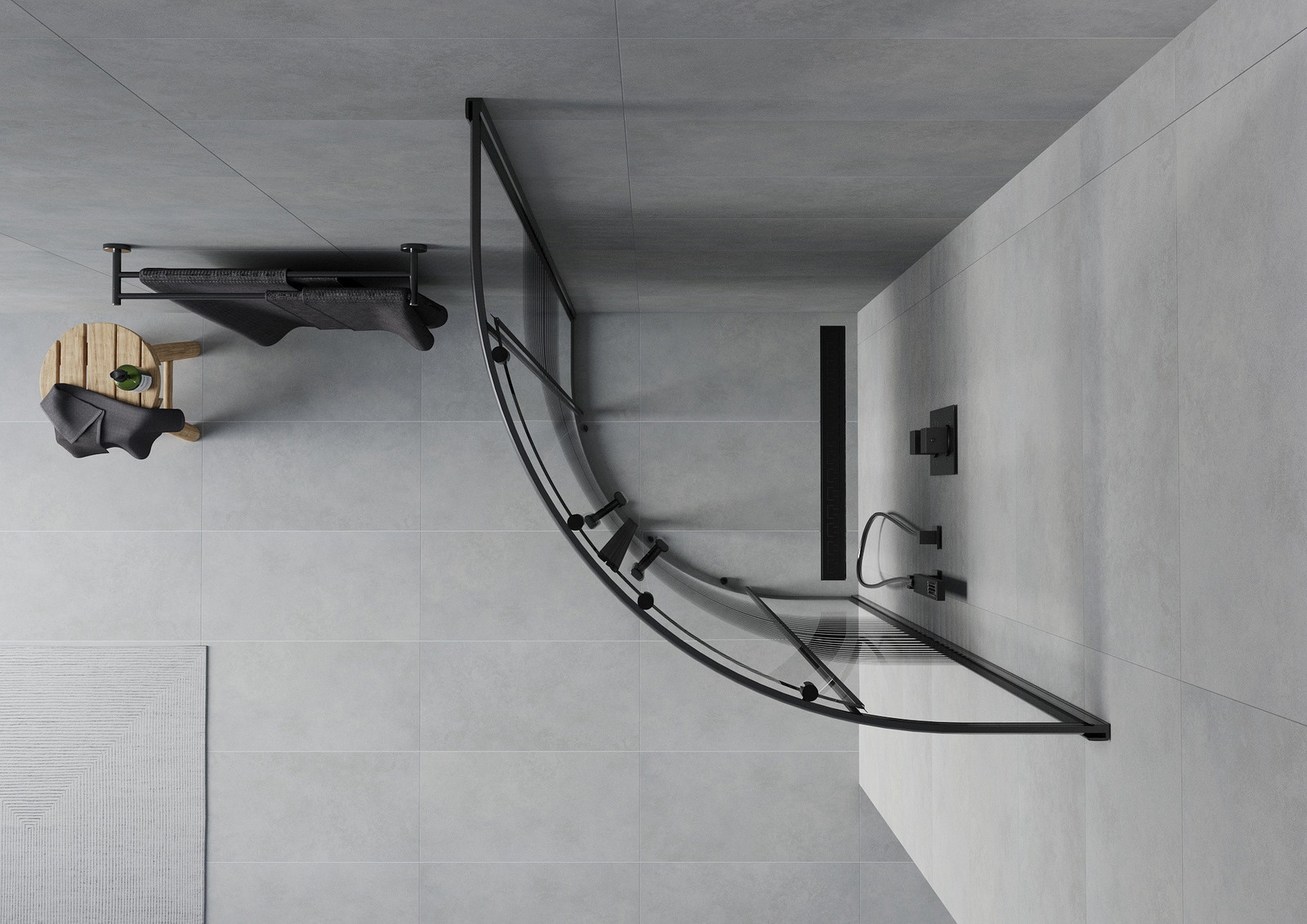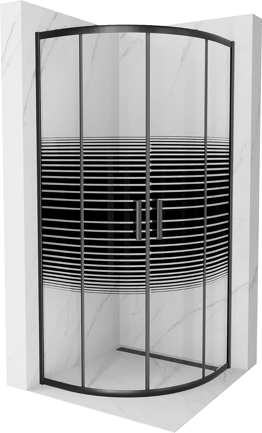 Mexen Rio jednoduchý sprchový kout půlkruhový 90 x 90 cm, černé pruhy, černý - 863-090-090-70-20