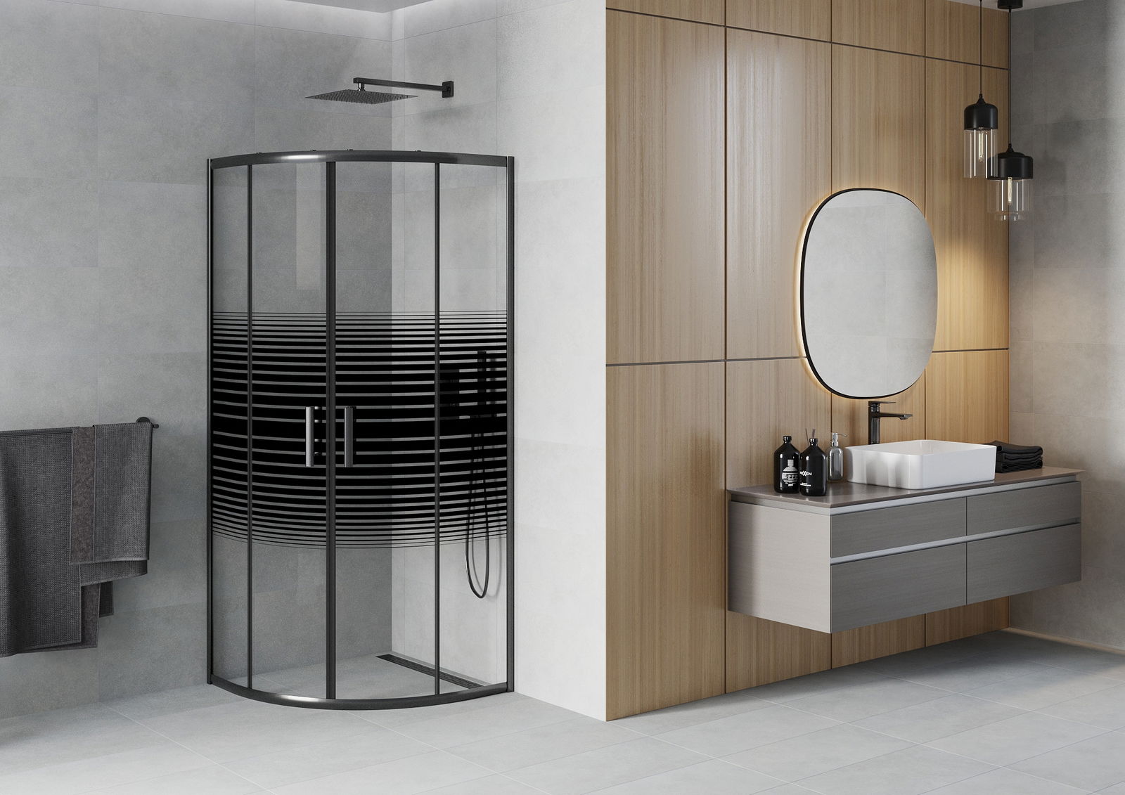• Mexen Rio sprchový kout půlkruhový 90 x 90 cm, černé pásy, černá - 863-090-090-70-20