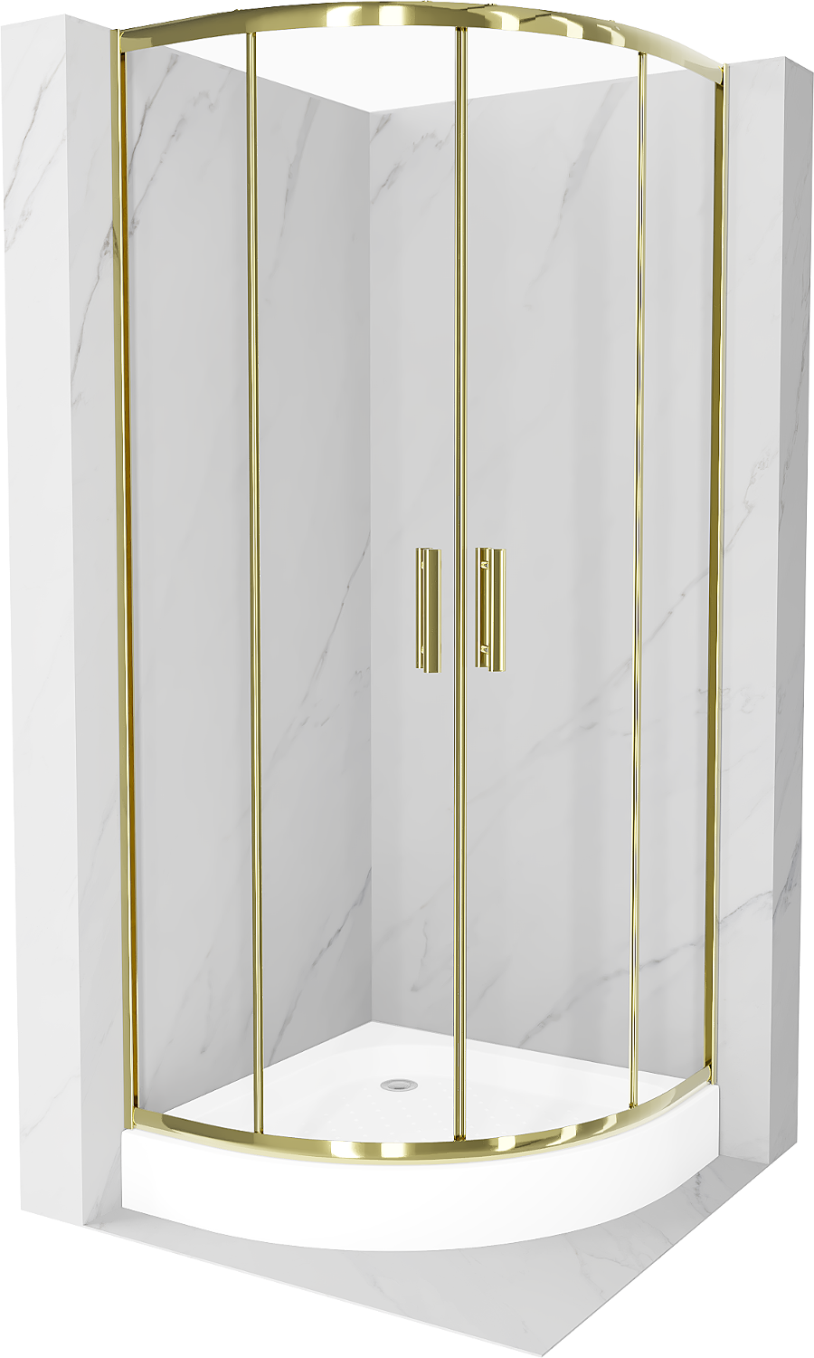Mexen Rio polokruhový sprchový kout 90 x 90 cm, transparentní, zlatý + sprchová vanička Rio, bílá - 863-090-090-50-00-4710