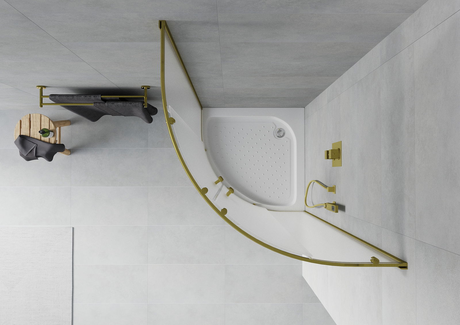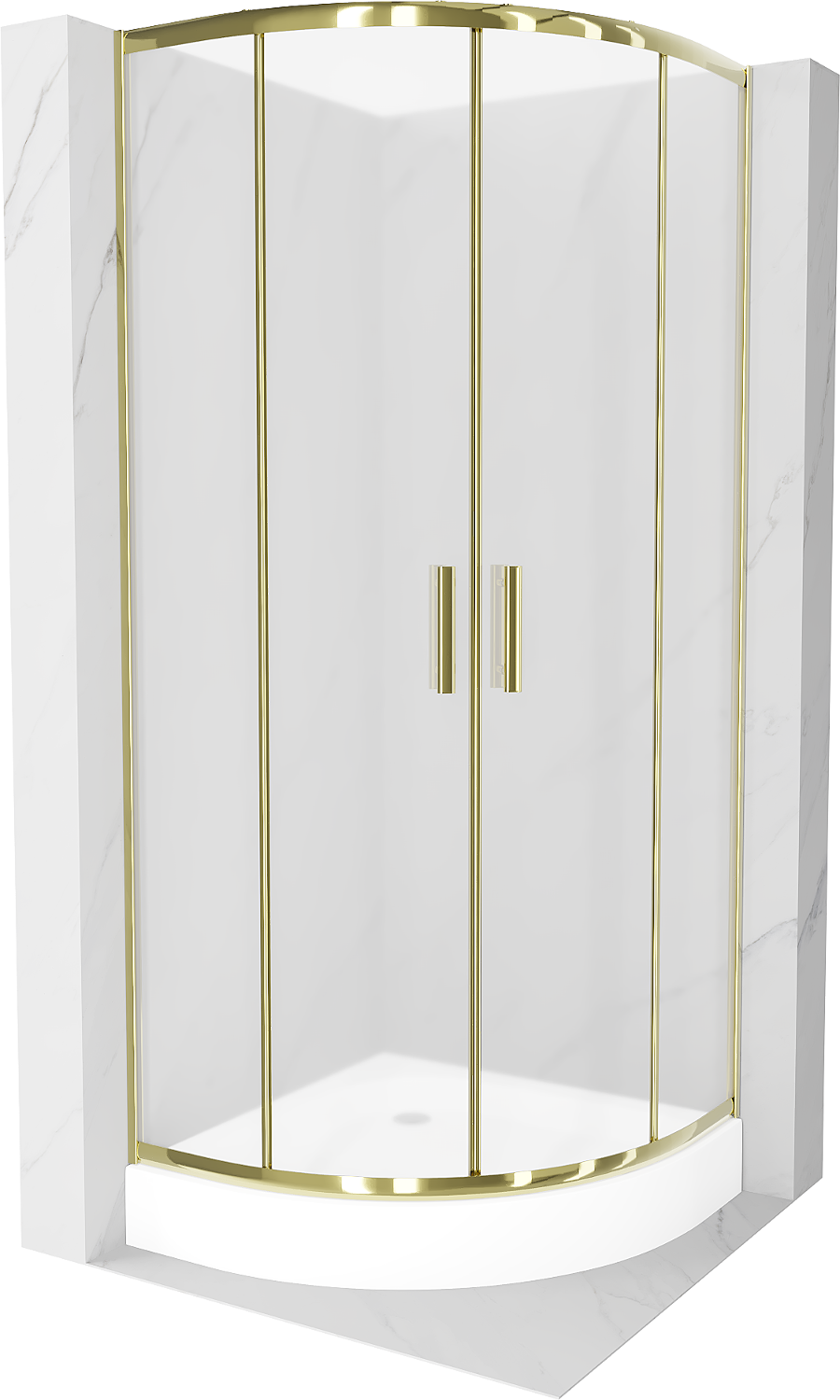 Mexen Rio sprchový kout půlkruhový 90 x 90 cm, mráz, zlatý + sprchová vanička Rio, bílá - 863-090-090-50-30-4710