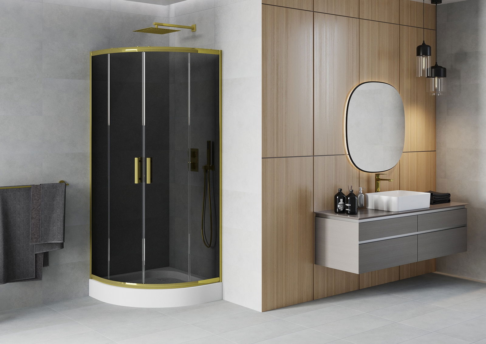 Praktická a pohodlná rukojeť je vyrobena z odolného a trvanlivého kovu. Moderní tvar ve spojení s povrchovou úpravou, která ladí s barvou profilů, dodává celku moderní a stylový vzhled, zdůrazňující estetiku každé koupelny.