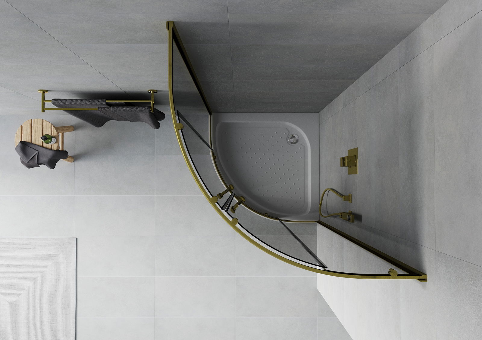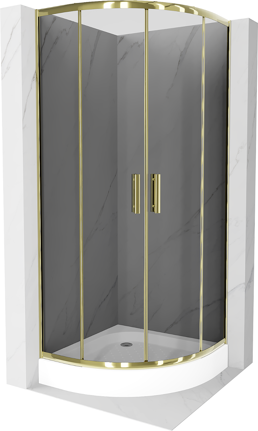 Mexen Rio půlkruhová sprchová kabina 70 x 70 cm, grafitová, zlatá + vanička Rio, bílá - 863-070-070-50-0-4710