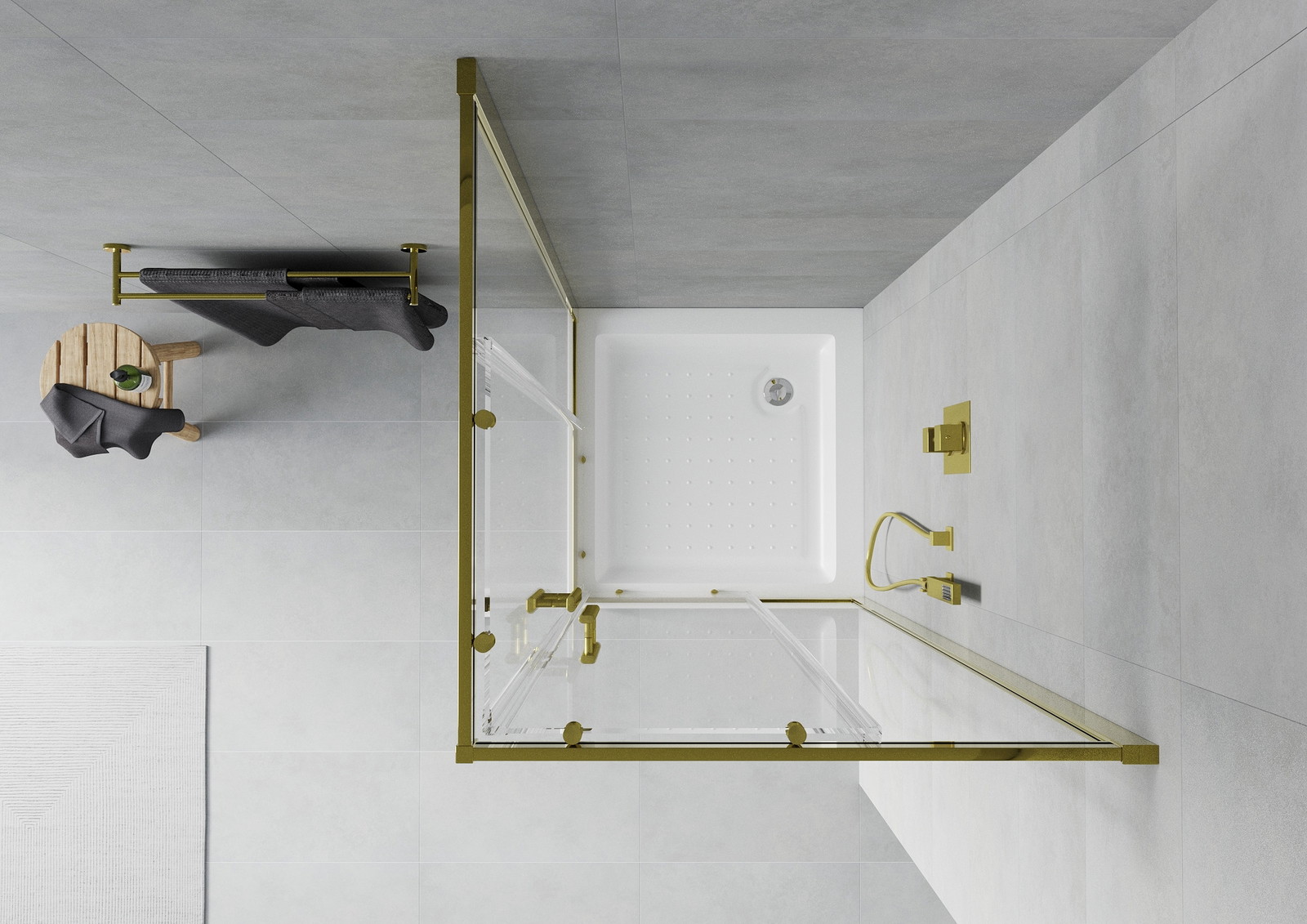 Mexen Rio čtvercová sprchová kabina 70 x 70 cm, průhledná, zlatá + vanička, bílá - 860-070-070-50-00-4510