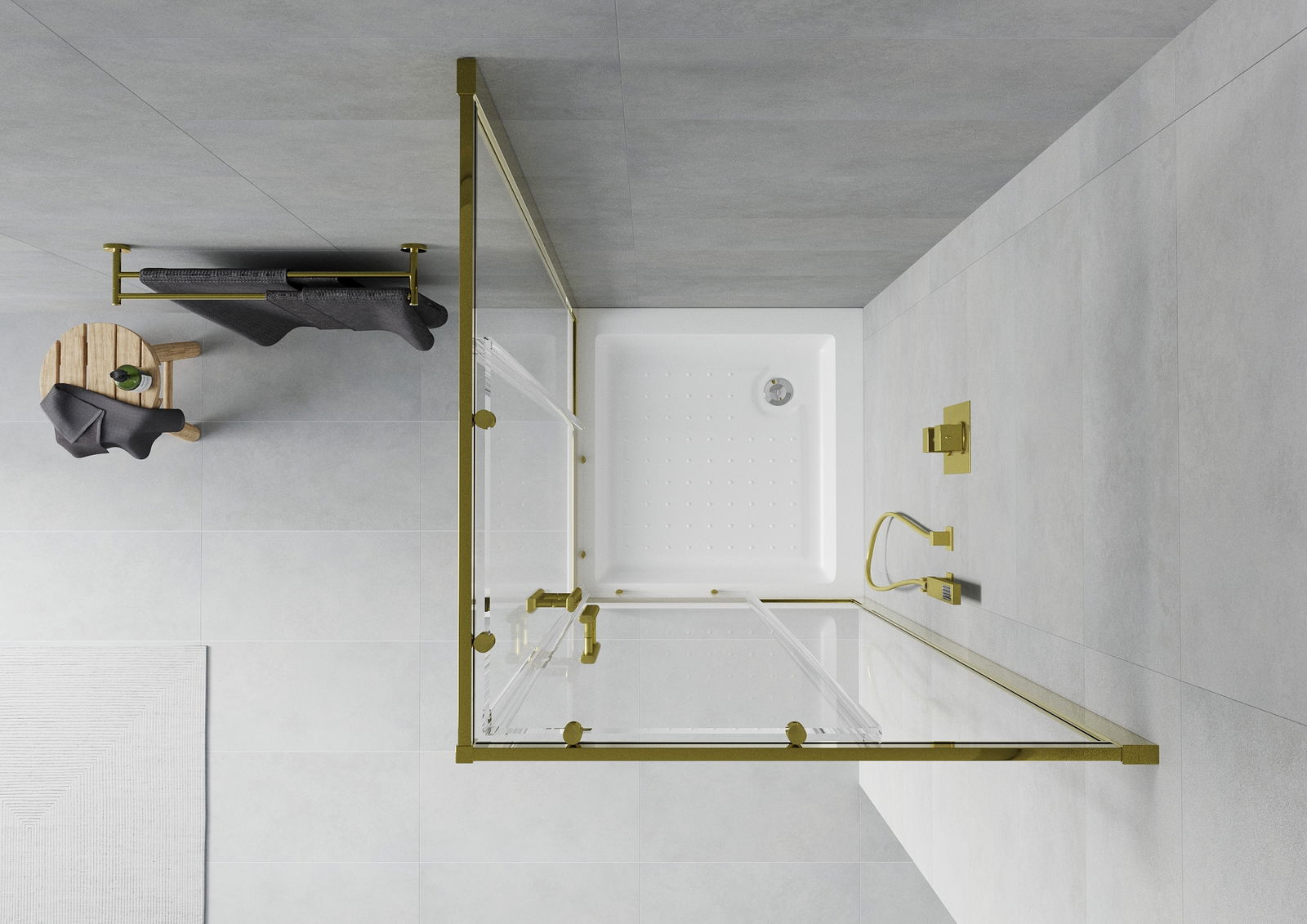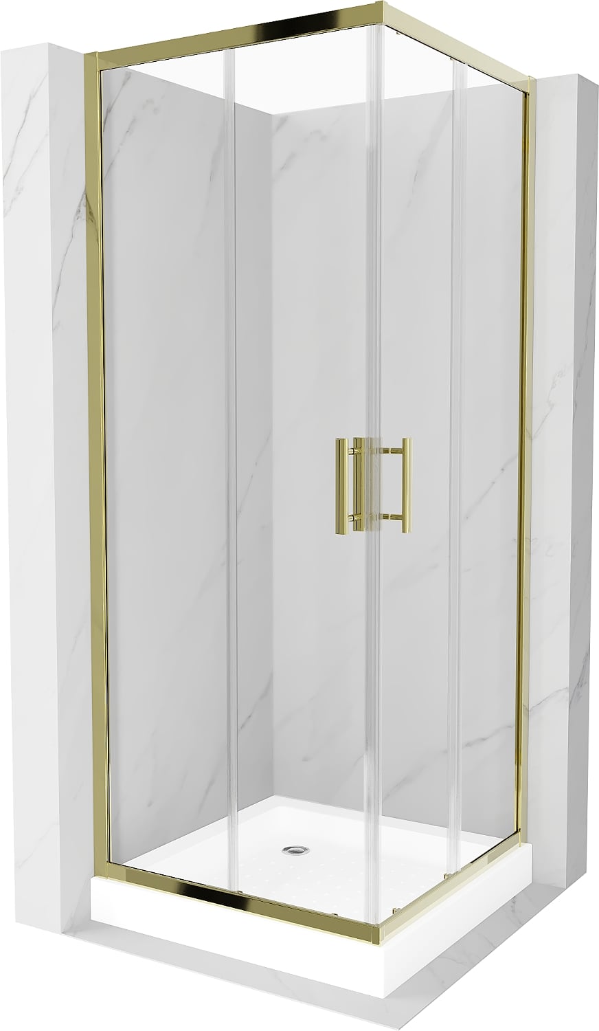 Mexen Rio čtvercová sprchová kabina 70 x 70 cm, průhledná, zlatá + vanička Rio, bílá - 860-070-070-50-00-4510