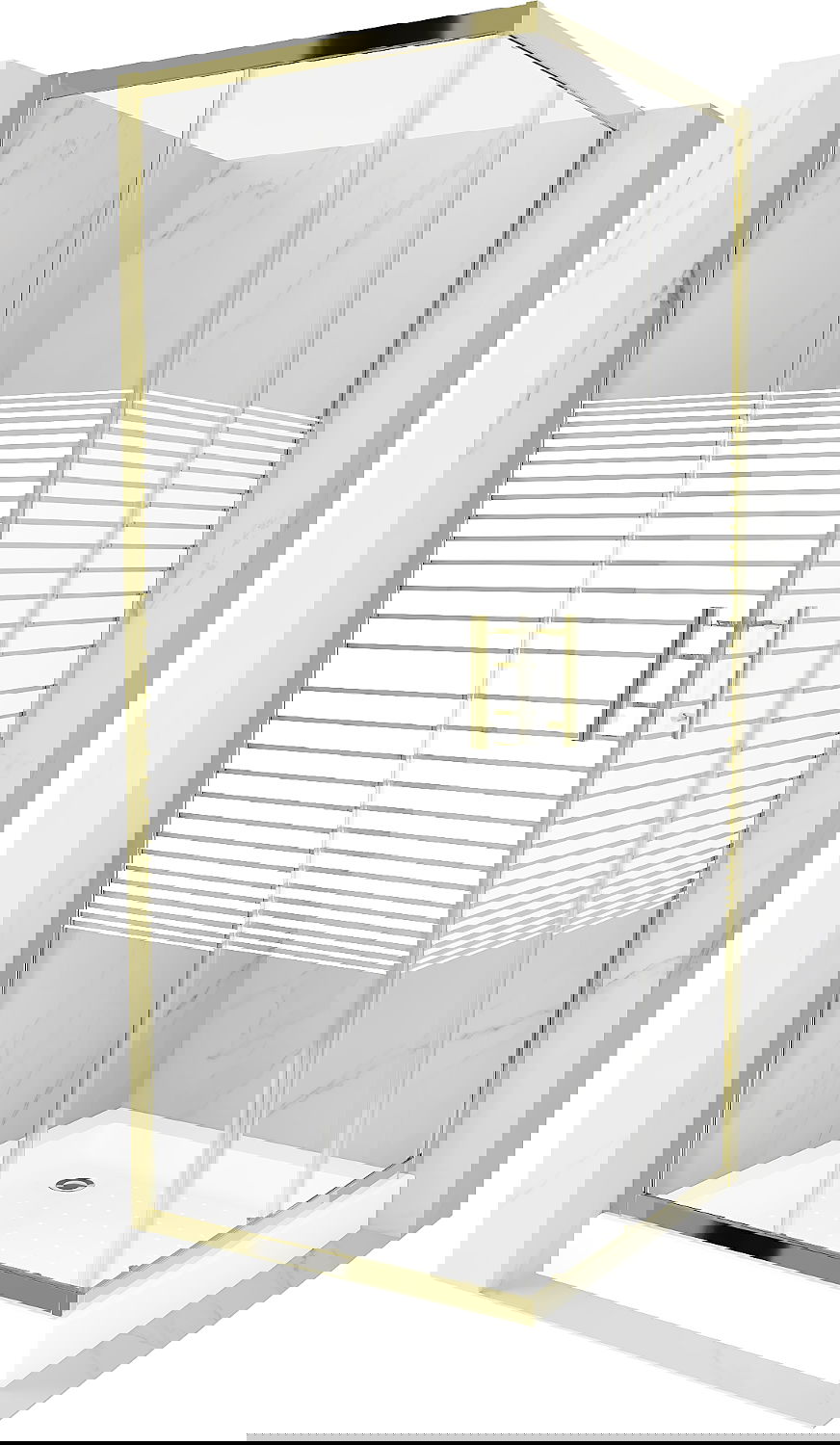 Mexen Rio čtvercová sprchová kabina 70 x 70 cm, bílé pruhy, zlatá + vanička, bílá - 860-070-070-50-20-4510