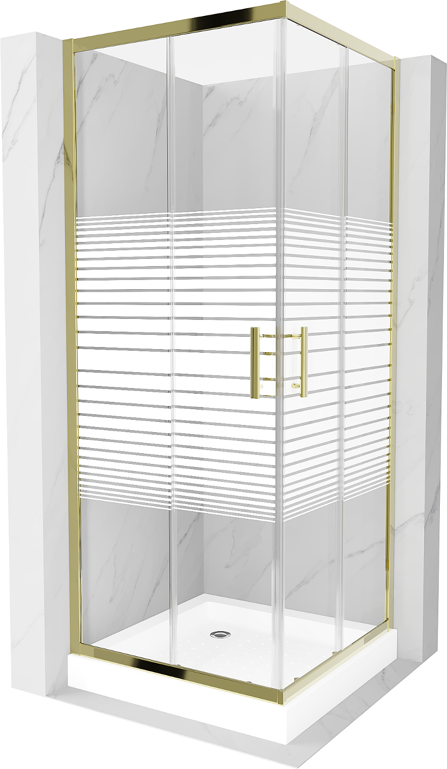 Mexen Rio čtvercová sprchová kabina 80 x 80 cm, bílé pruhy, zlatá + vanička, bílá - 860-080-080-50-20-4510