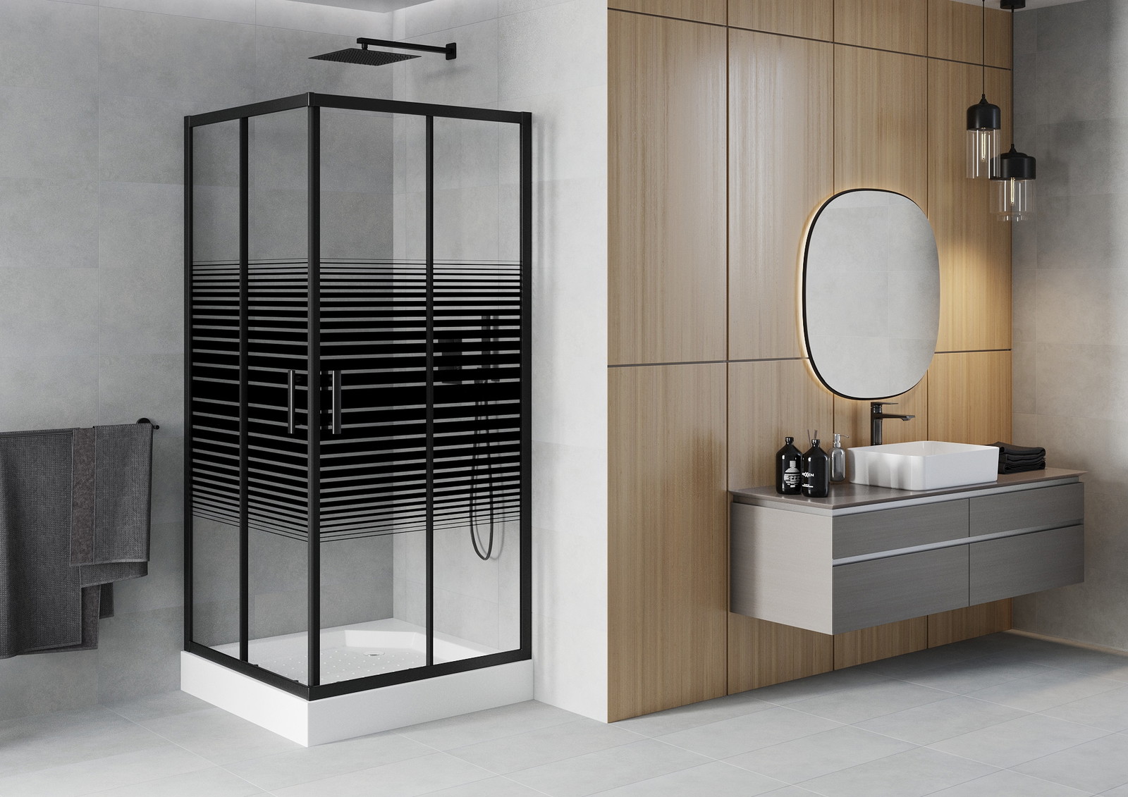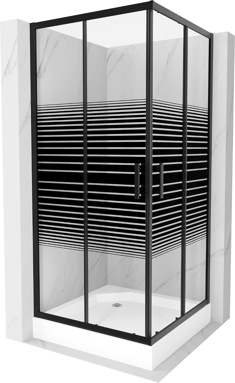 Mexen Rio čtvercová sprchová kabina 90 x 90 cm, černé pruhy, černá + sprchová vanička, bílá - 860-090-090-70-20-4510