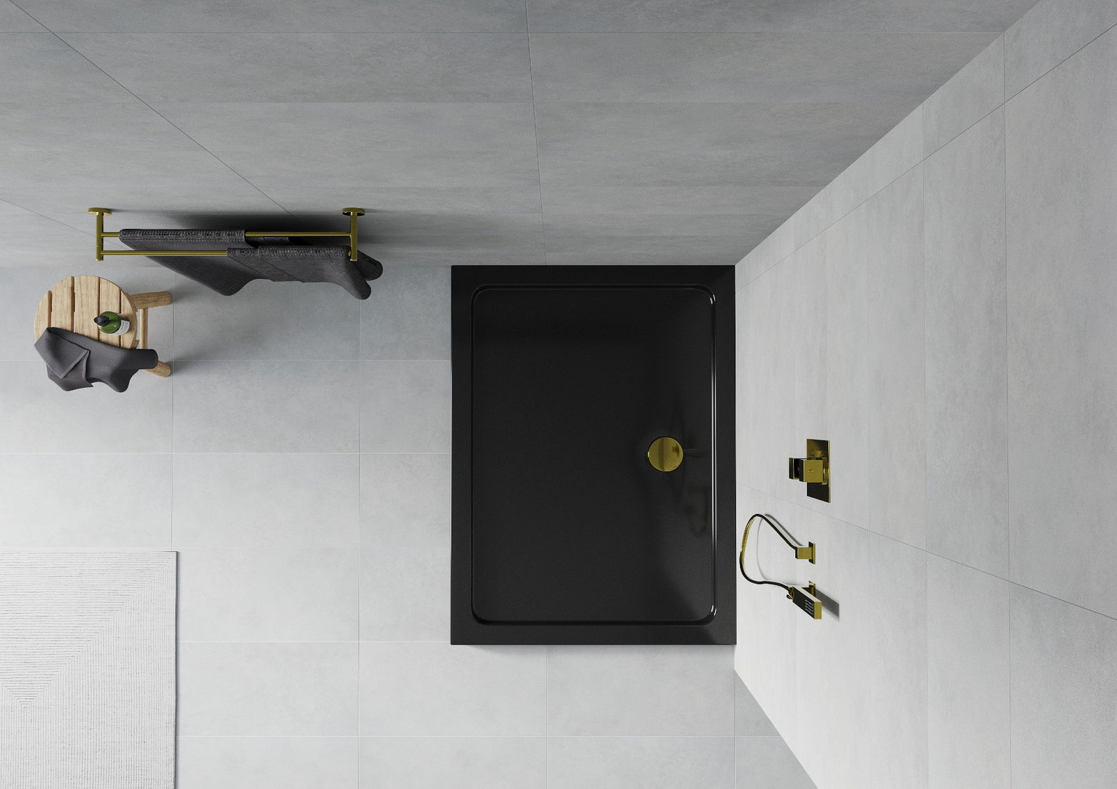 Mexen Flat obdélníkový sprchový kout slim 130 x 90 cm, černý, sifon zlatý - 40709013G