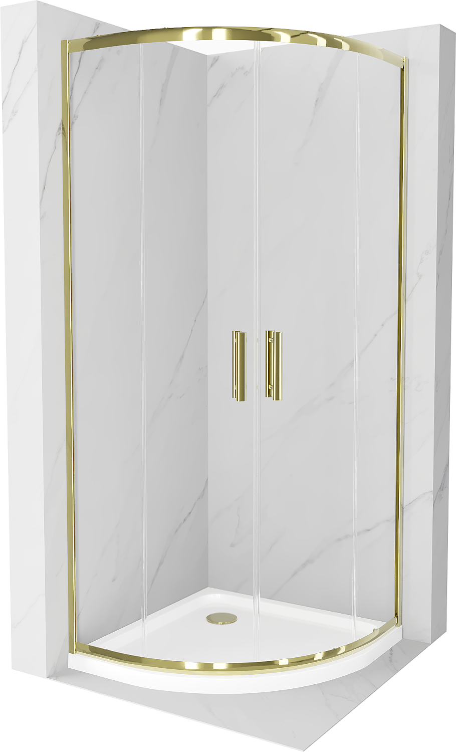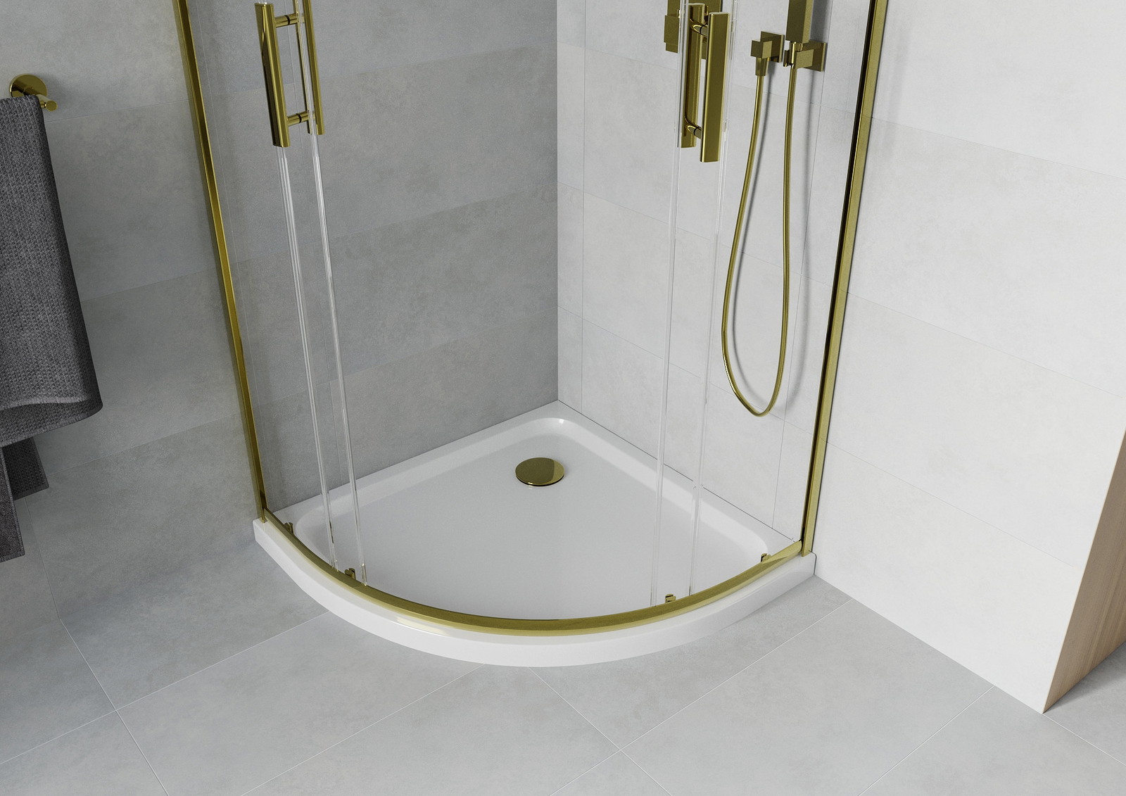 Mexen Rio sprchový kout půlkruhový 80 x 80 cm, transparentní, zlatý + sprchová vanička Flat, bílá