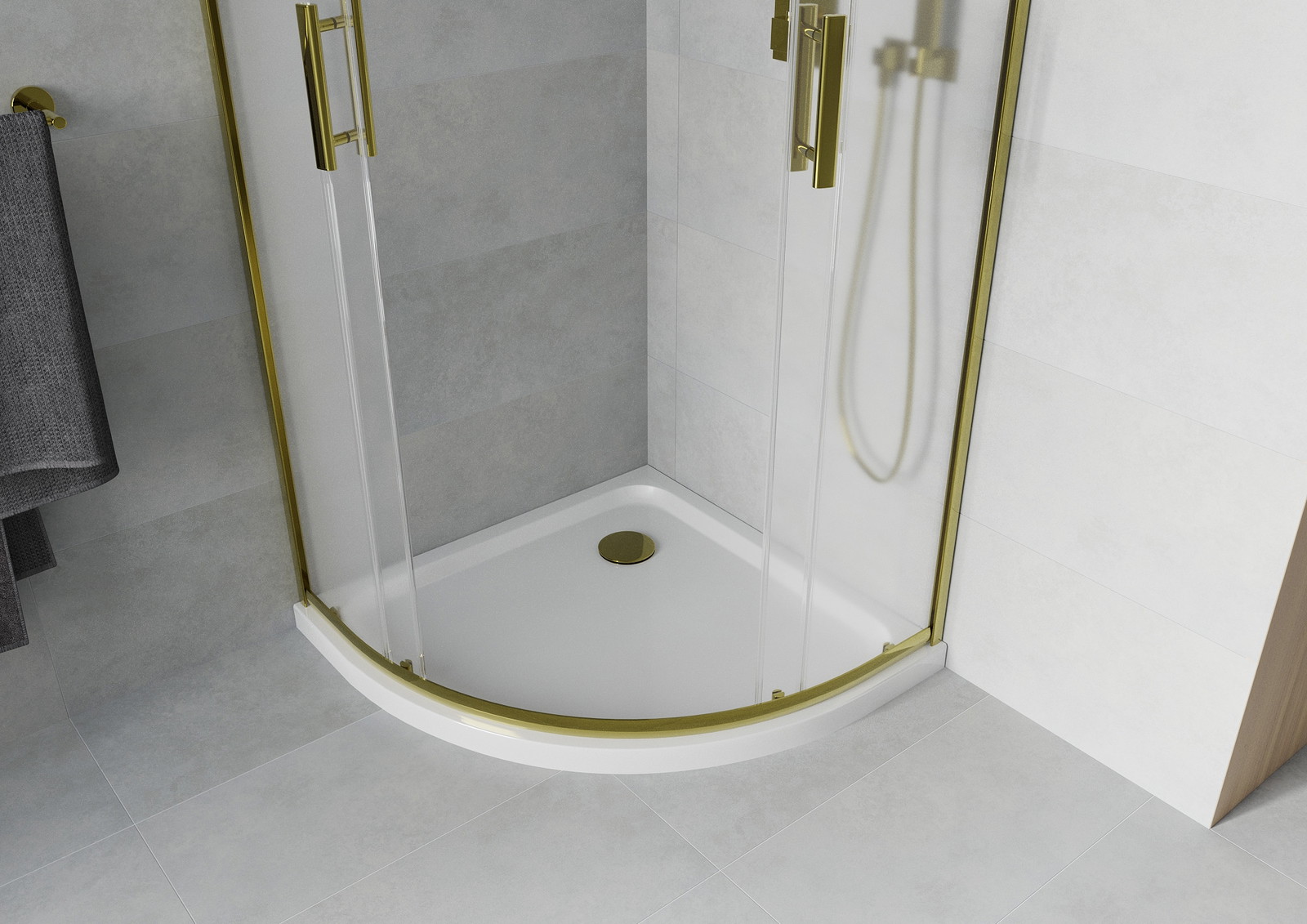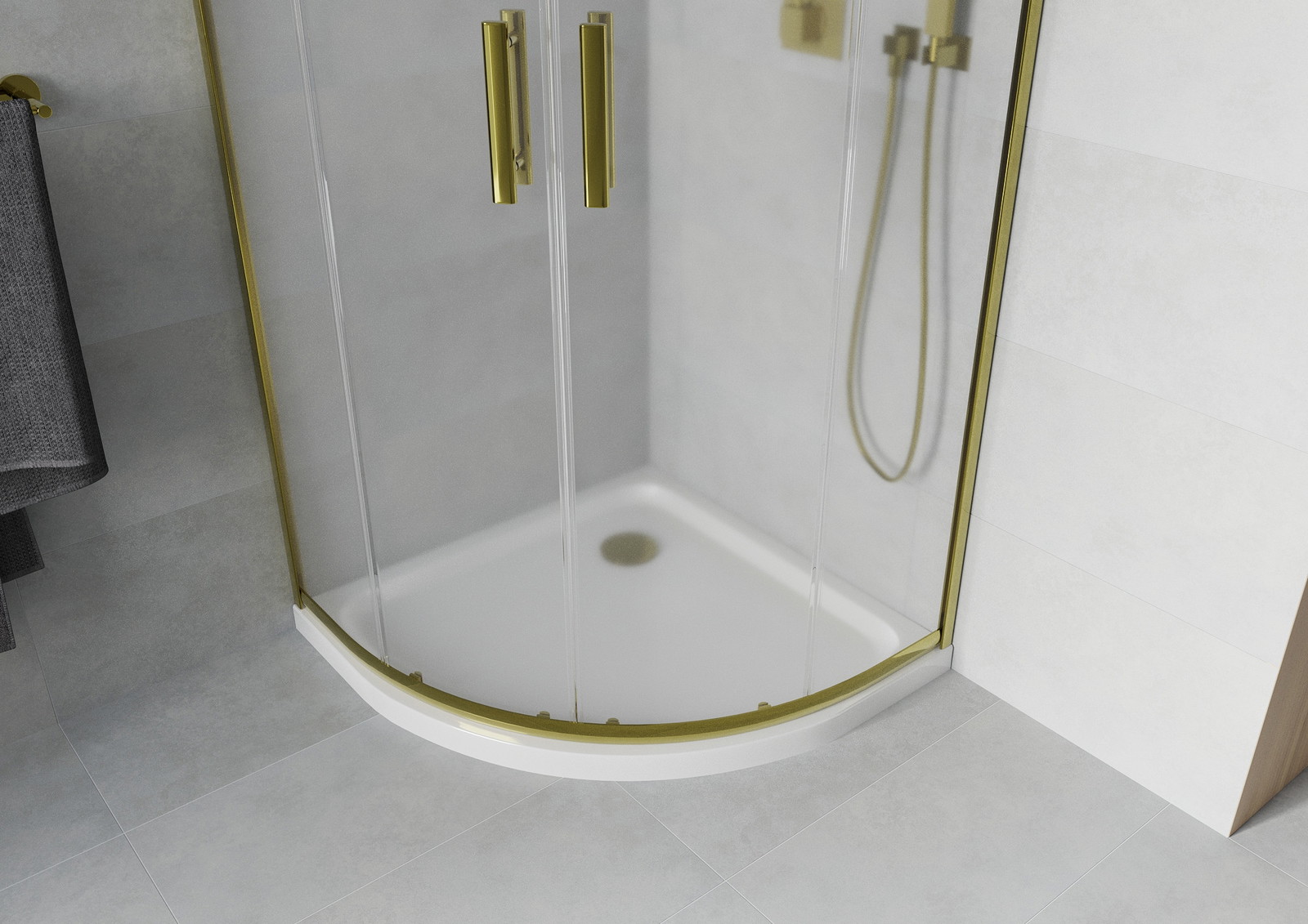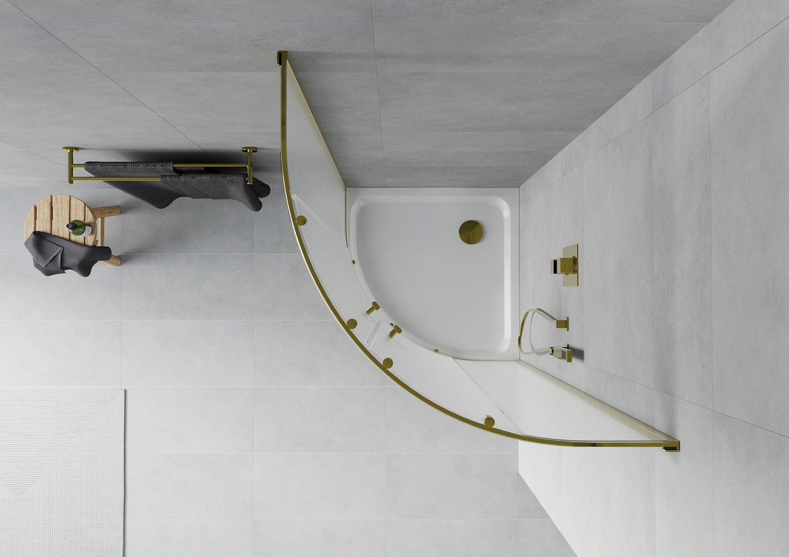 Mexen Rio sprchový kout půlkruhový 90 x 90 cm, matné sklo, zlatý + vanička Flat, bílá - 863-090-090-50-30-4110G