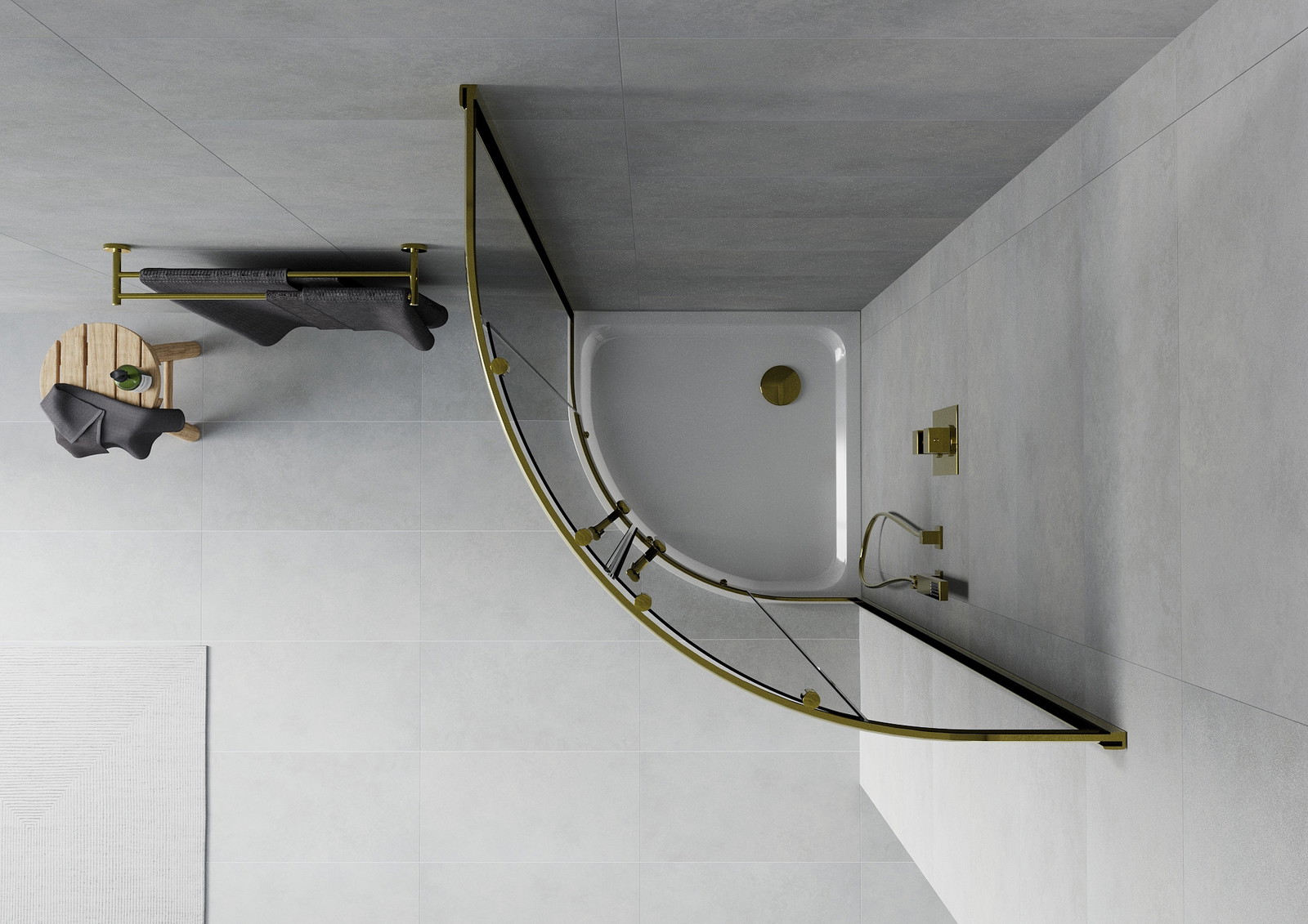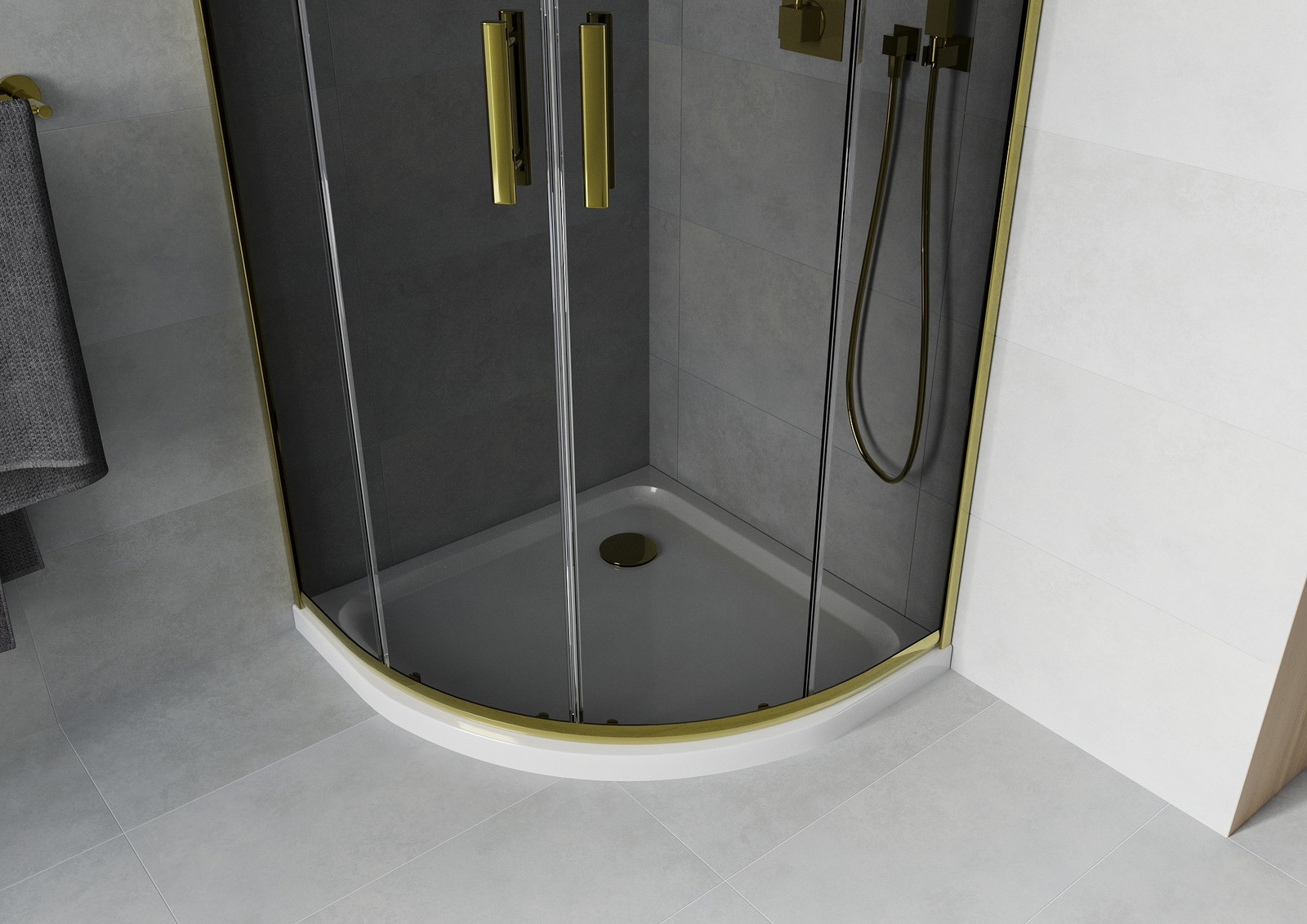 Mexen Rio sprchový kout půlkruhový 80 x 80 cm, grafit, zlatý + vanička Flat, bílý - 863-080-080-50-40-4110G