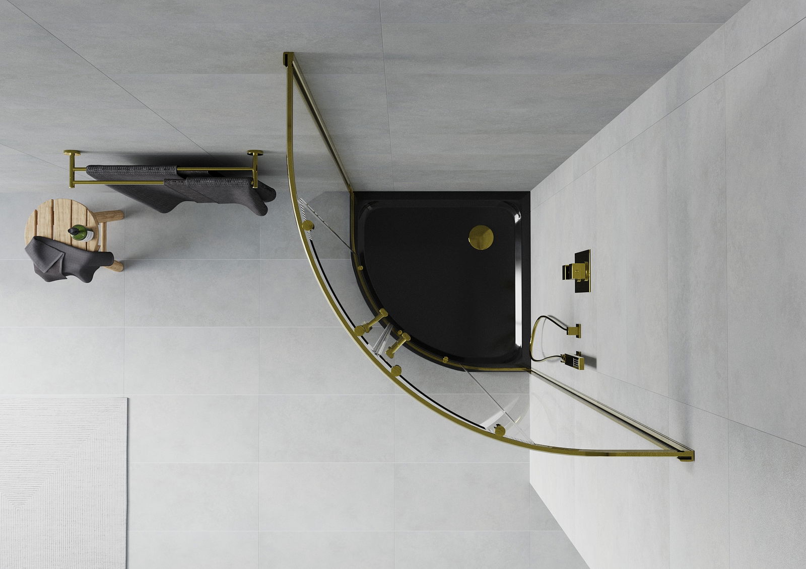 Mexen Rio sprchový kout polokruhový 80 x 80 cm, transparentní, zlatý + sprchová vanička Flat, černá - 863-080-080-50-00-4170G