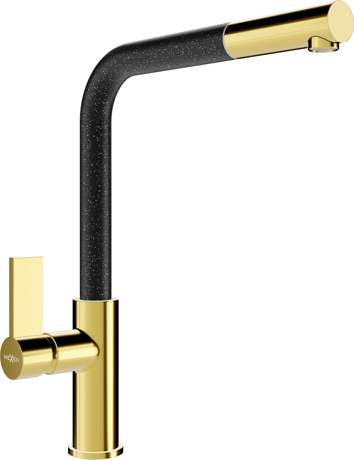 Mexen Flora kuchyňská baterie, zlatá/černá s tečkami - 670401-75