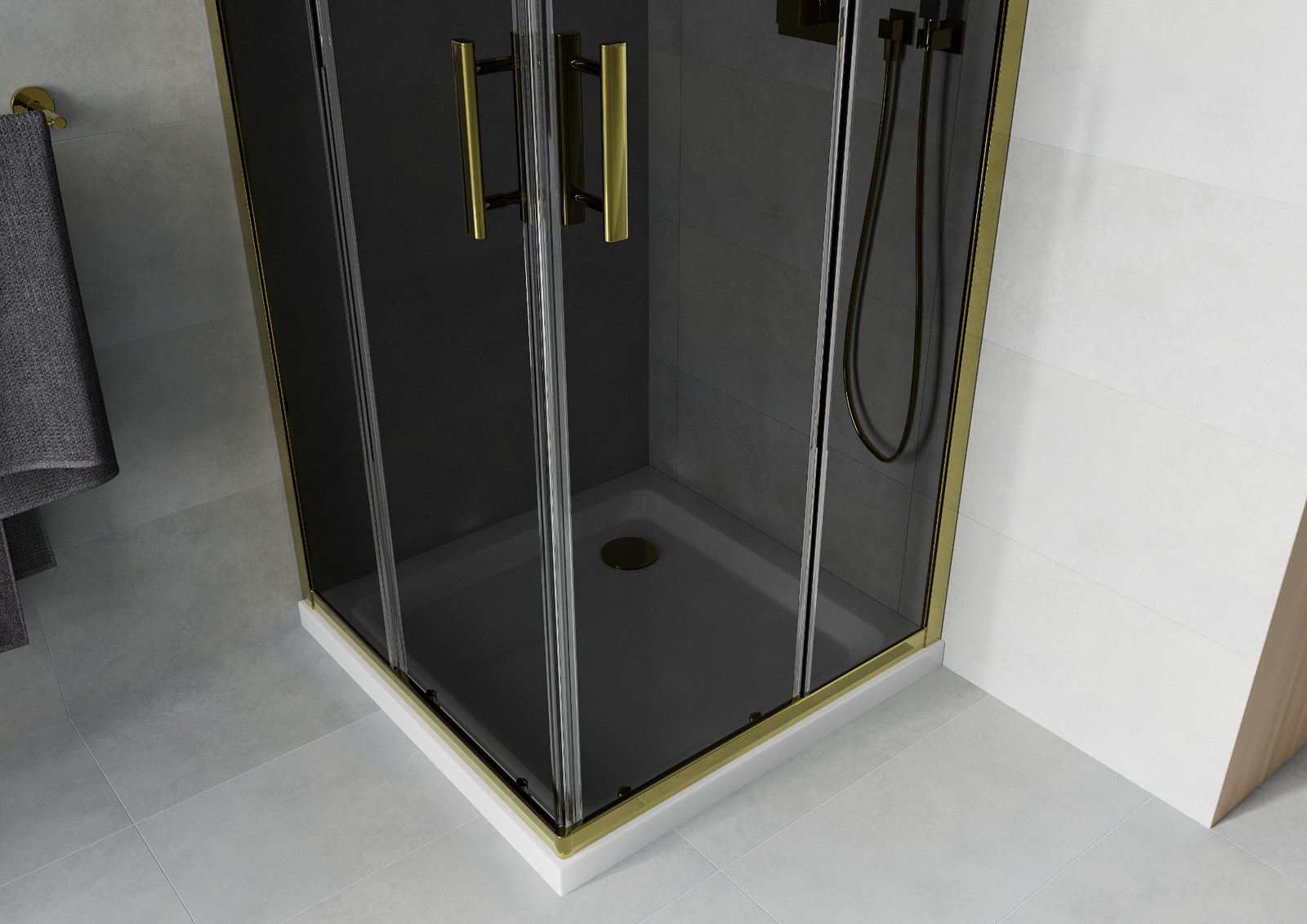 Praktická a pohodlná rukojeť je vyrobena z odolného a trvanlivého kovu. Moderní tvar ve spojení s povrchovou úpravou, která ladí s barvou profilů, dodává celku moderní a stylový vzhled, zdůrazňující estetiku každé koupelny.