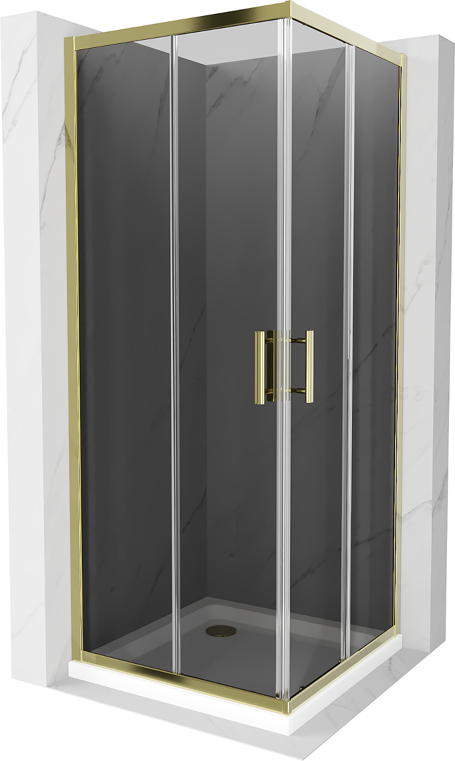 Mexen Rio čtvercová sprchová kabina 80 x 80 cm, grafit, zlatá + vanička Flat, bílá - 860-080-080-50-40-4010G